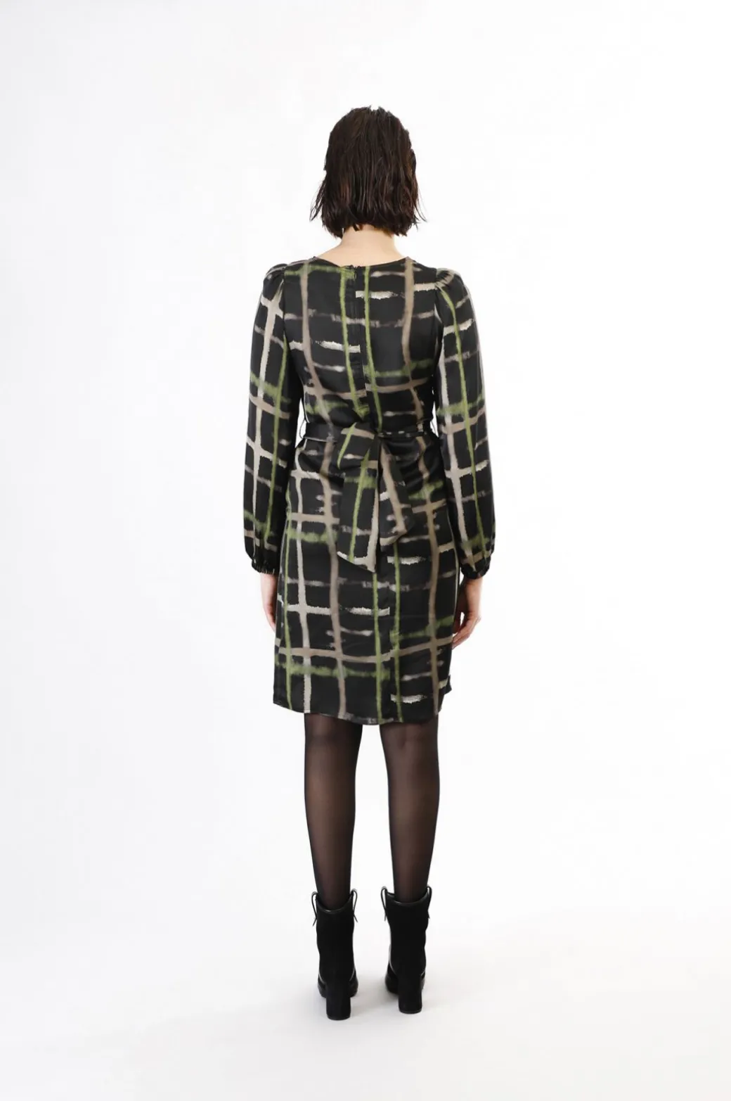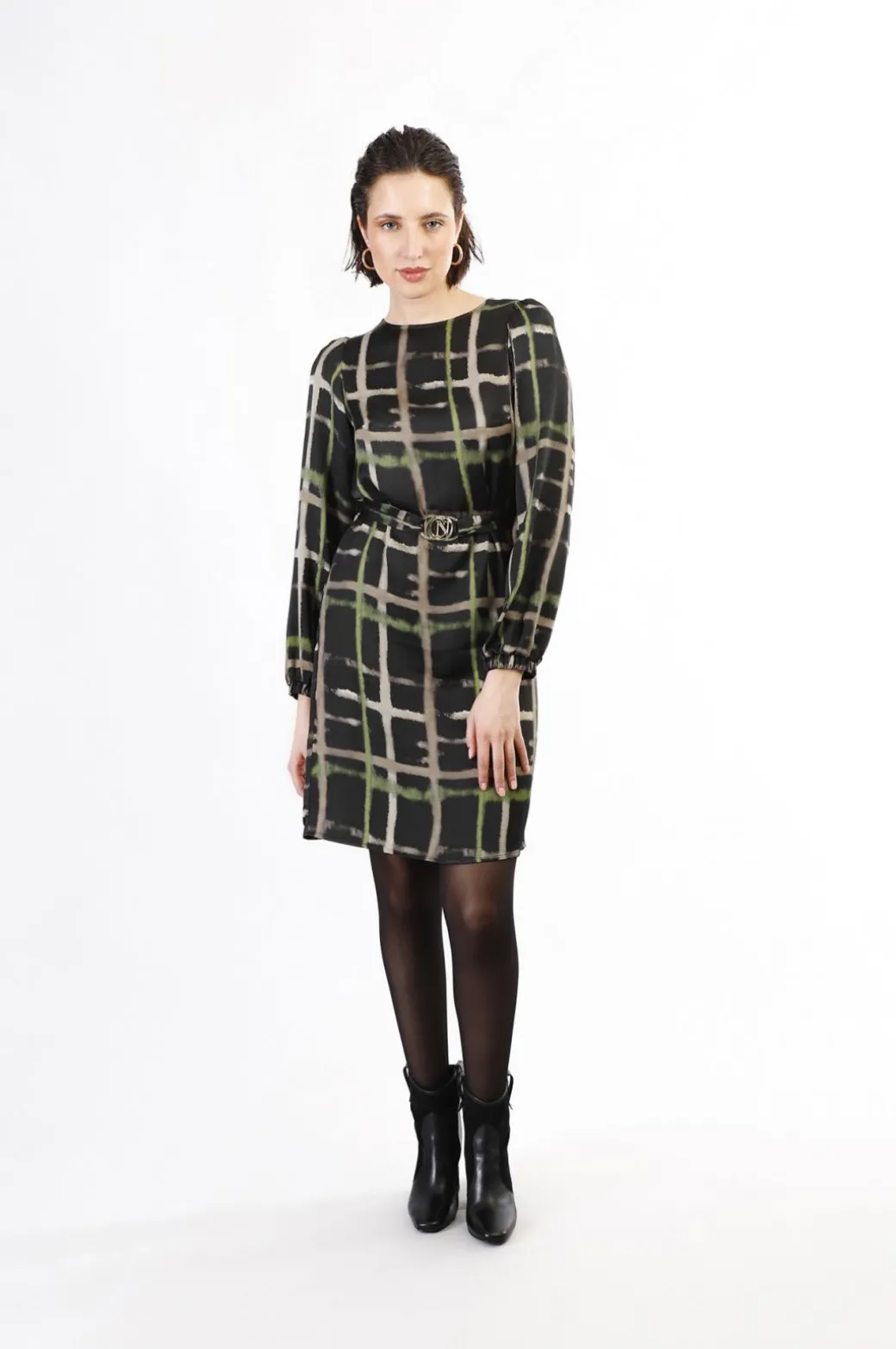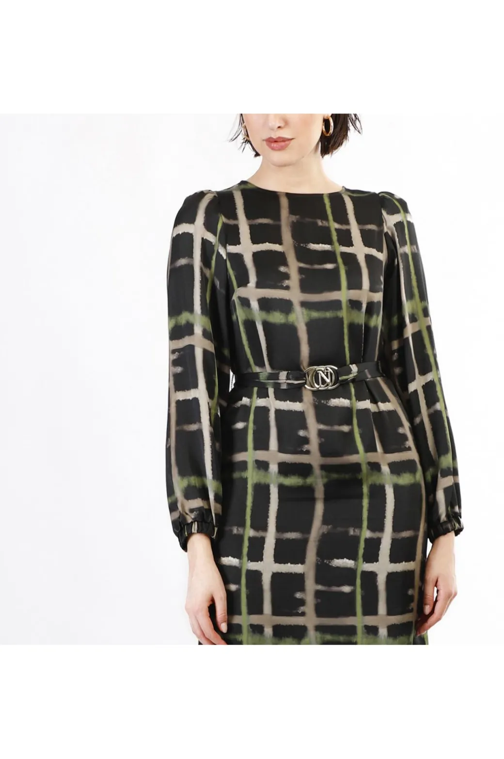 abito dritto stampato check pistacchio