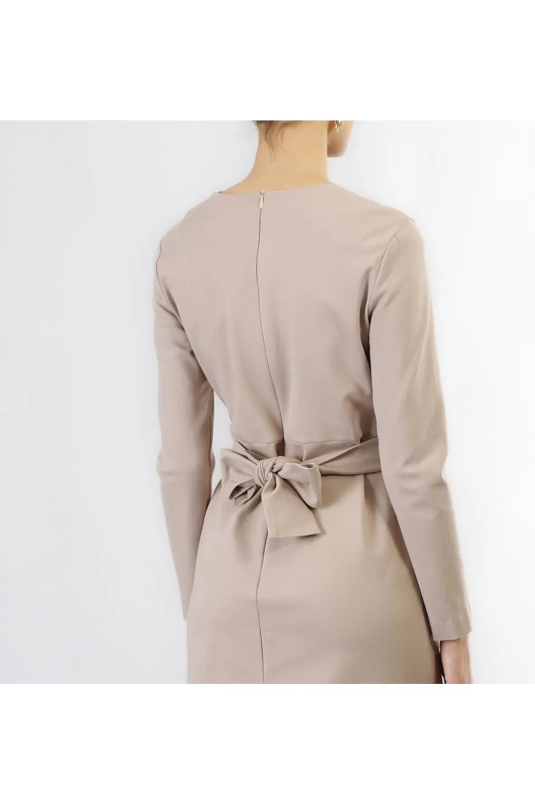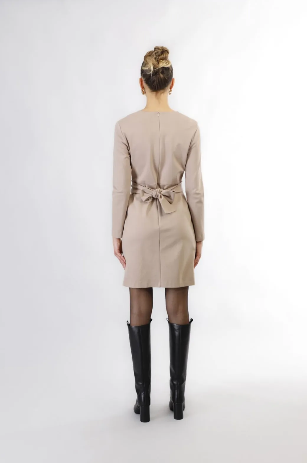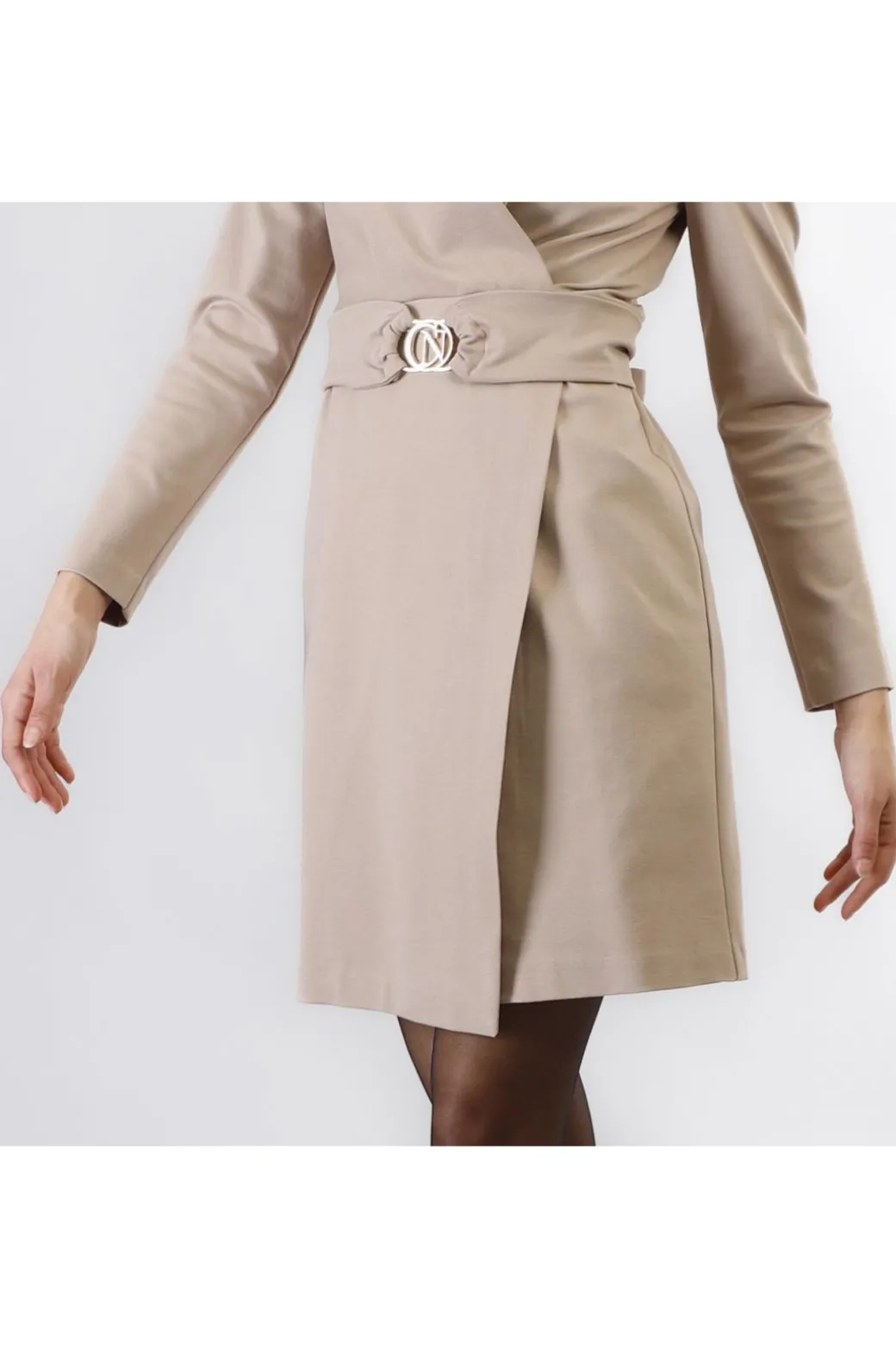 Abito portafoglio realizzato in tessuto elasticizzato punto milano. abito a maniche lunghe con scollatura incrociata. il capo è completo di una fusciacca in tessuto con fibbia logata cafènoir. chiusura con zip invisibile sul retro. capo giornaliero e versatile per diverse occasioni d’uso.
