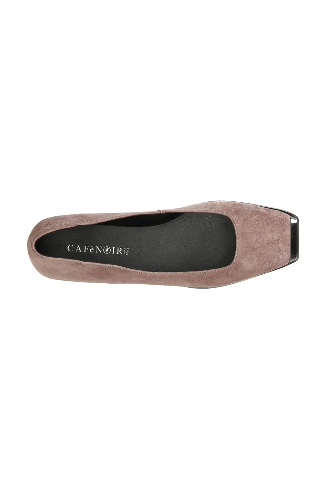 Ballerina in camoscio con puntale metallico. fodera e soletto sono in pelle. tacco alto 15 mm.