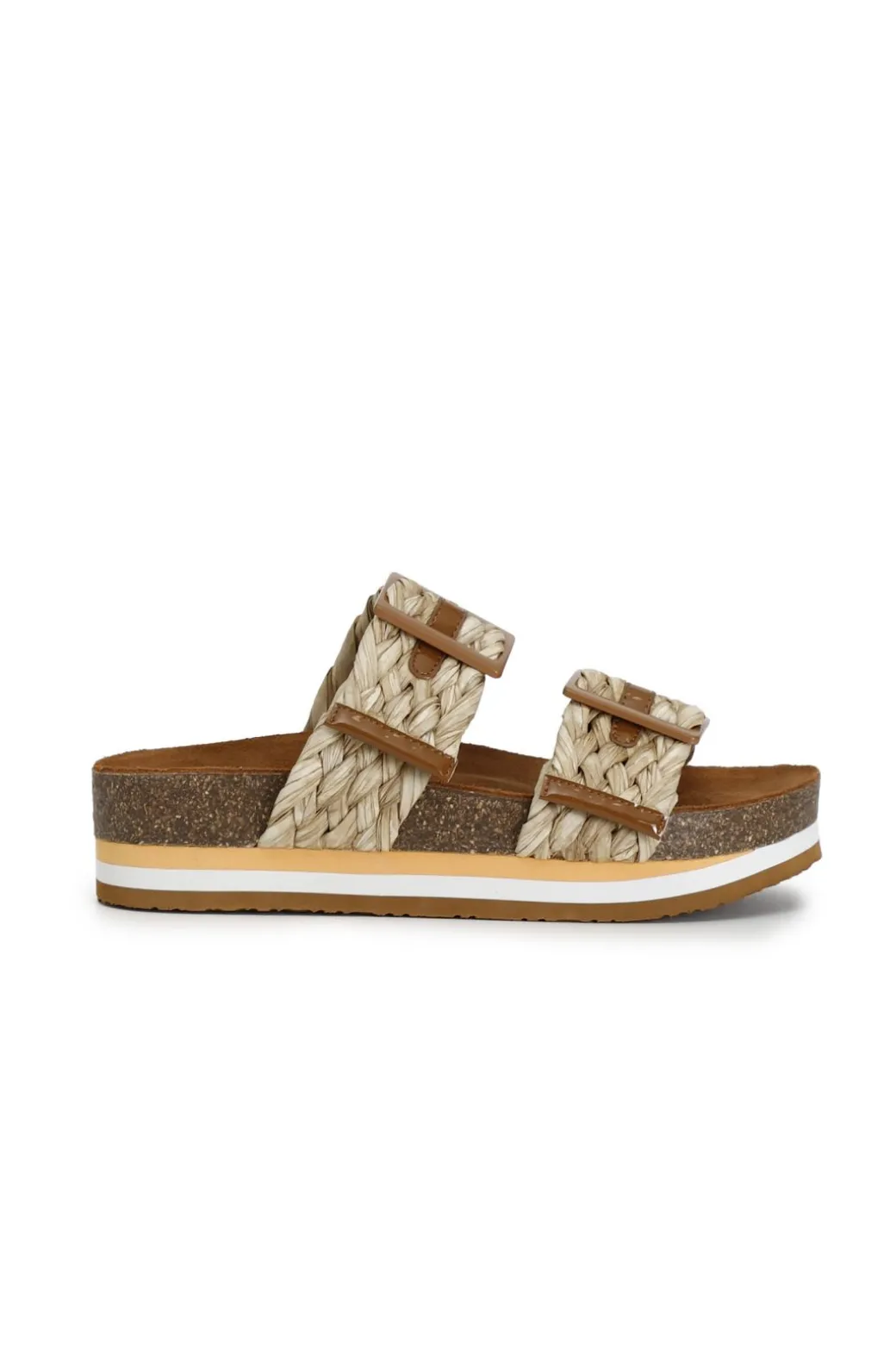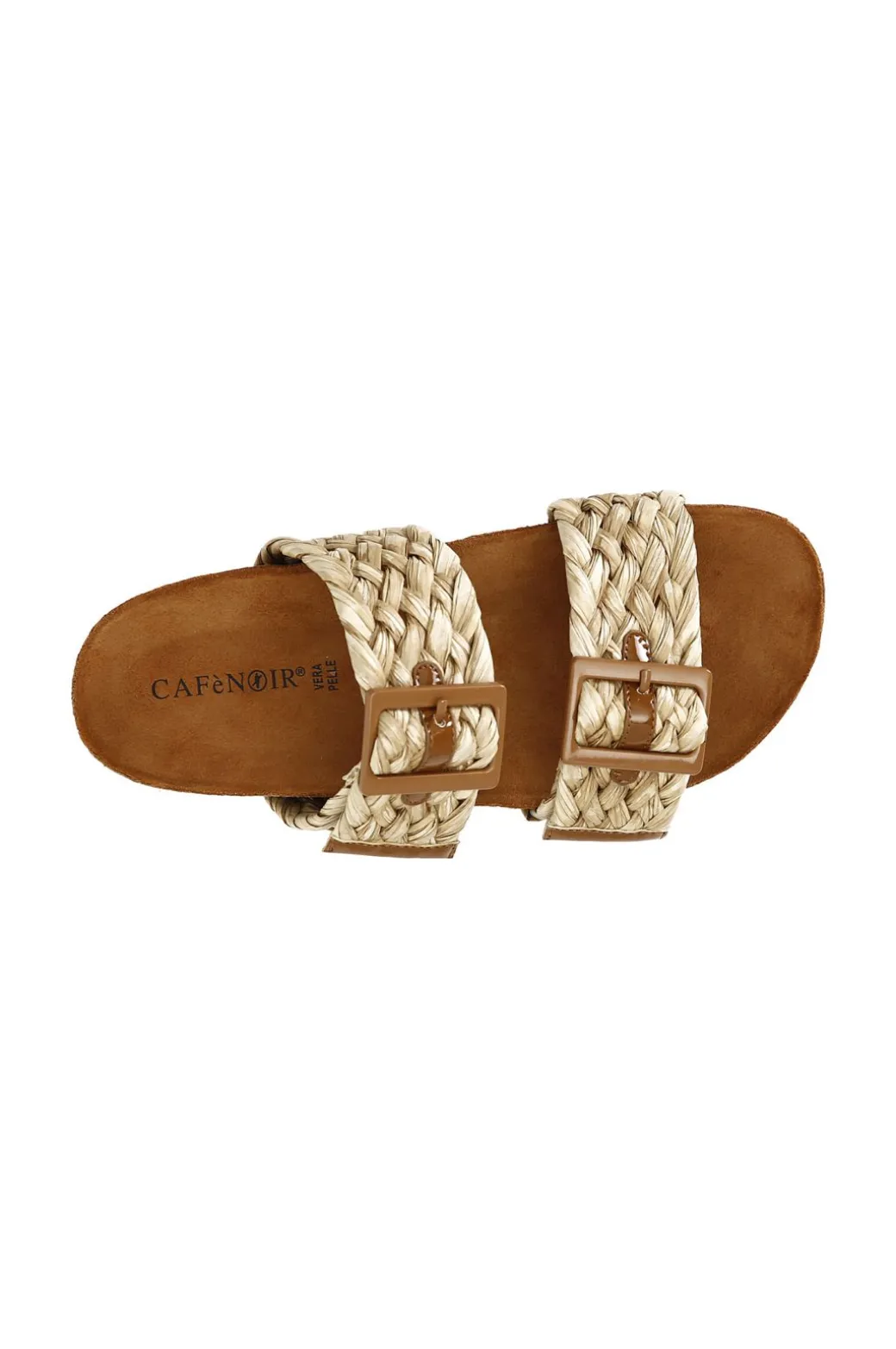 ciabatte doppia fibbia in raffia intrecciata cuoio