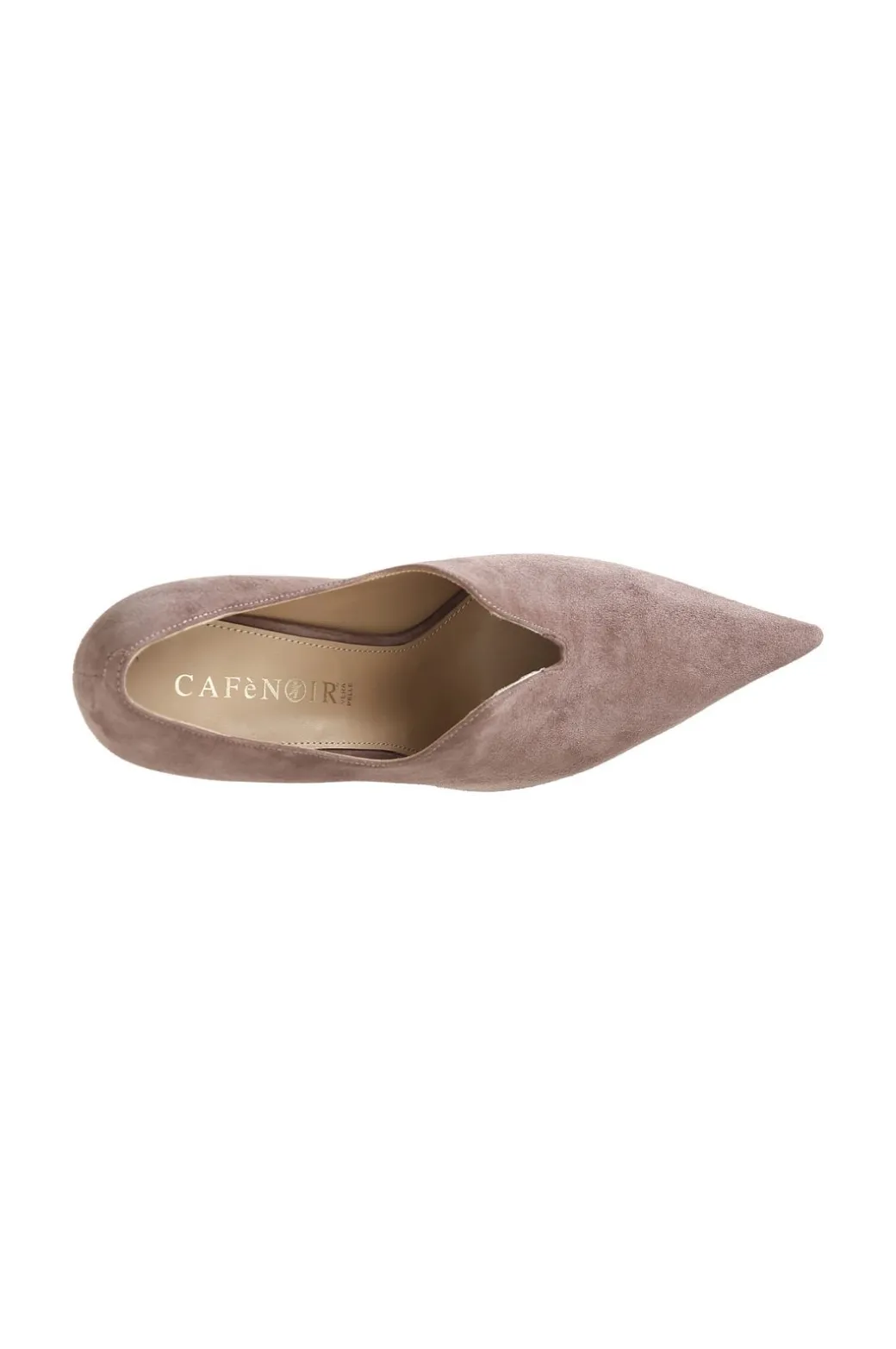 Décolleté in camoscio con taglio a “v”. tacco fine alto 87 mm. forma sfilata. fodera e soletto sono in pelle. calzatura dallo stile elegante e femminile.