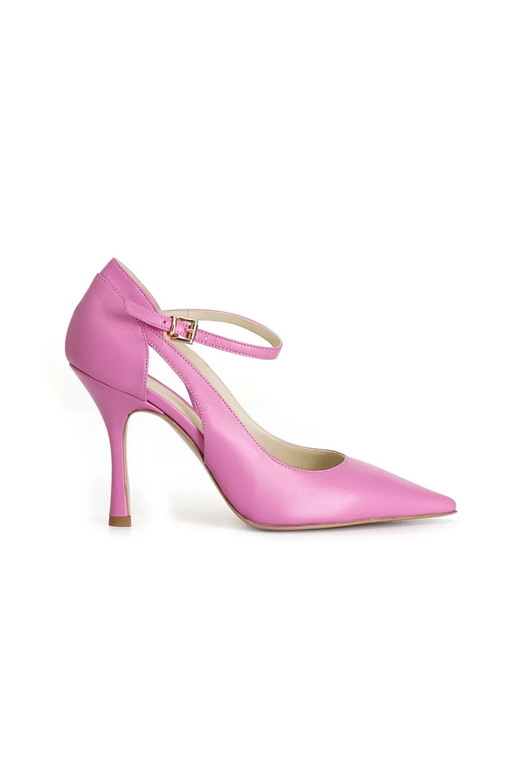 Dècollète in pelle con cinturino alla caviglia e tacco h. 90mm