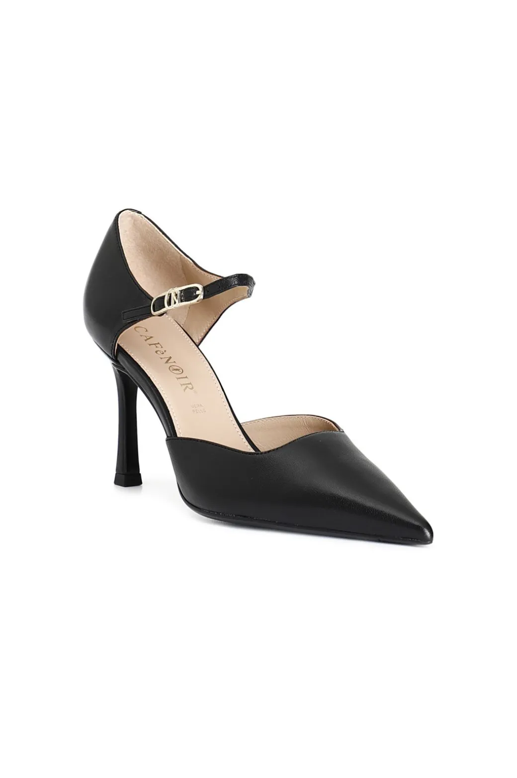Décollété spezzata aperta lateralmente sulla forma sfilata in pelle con fibbia personalizzata. tacco fine alto 87 mm. fodera e soletto sono in pelle. calzatura dallo stile elegante e femminile.