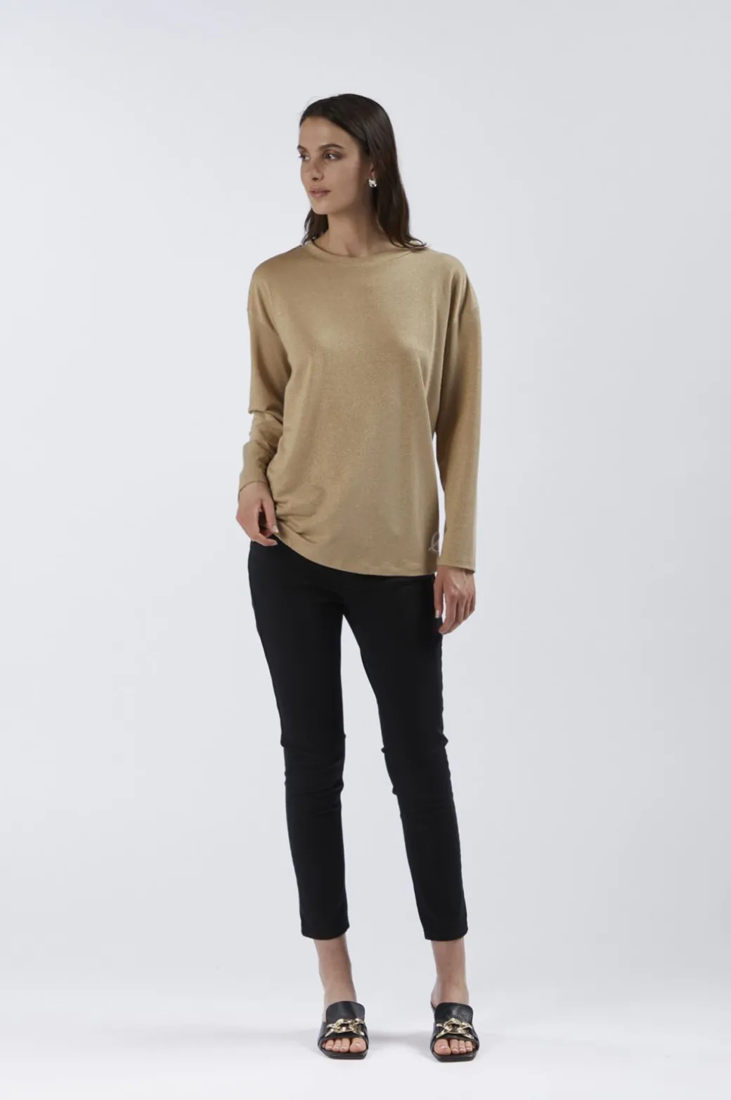 Felpa dalla vestibilità comoda realizzata in un tessuto tipo felpa misto viscosa con lurex. maniche lunghe. stampa del nostro logo presente sul fianco.