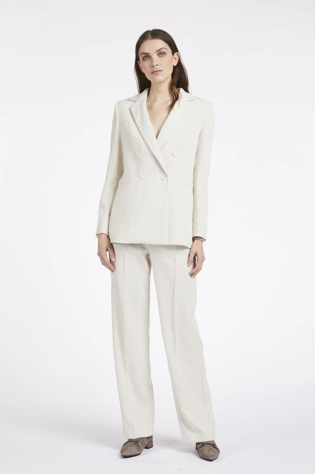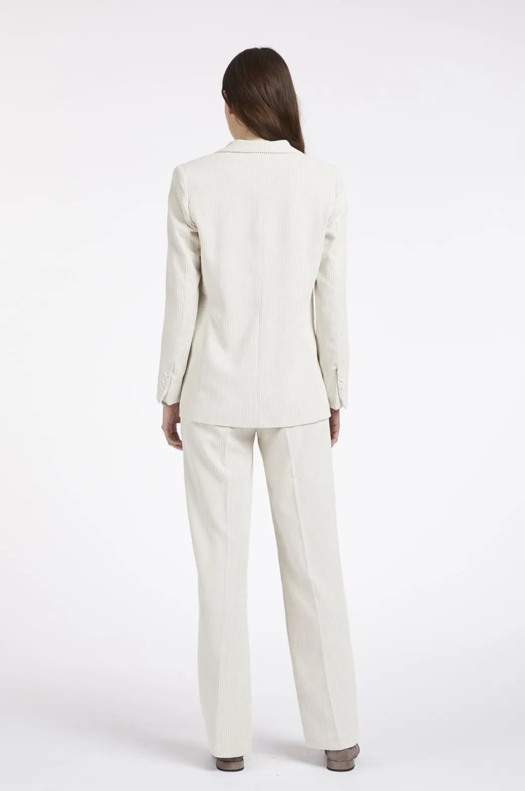Giacca doppiopetto dritta in velluto rocciatore. Capo grintoso ma iper femminile.