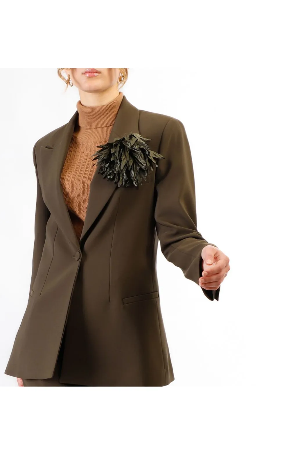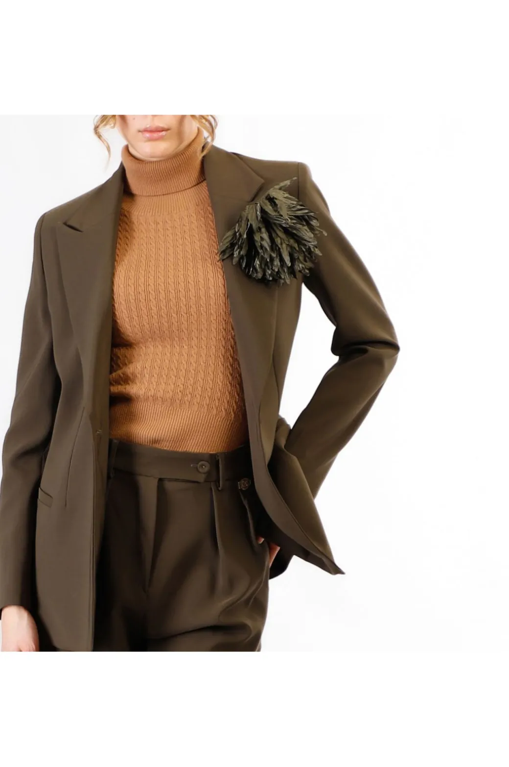 Giacca monopetto over con il collo a lancia realizzata in tessuto bistretch. elegante spilla a fiore. capo intramontabile da abbinare ad un paio di pantaloni skinny o a zampa.