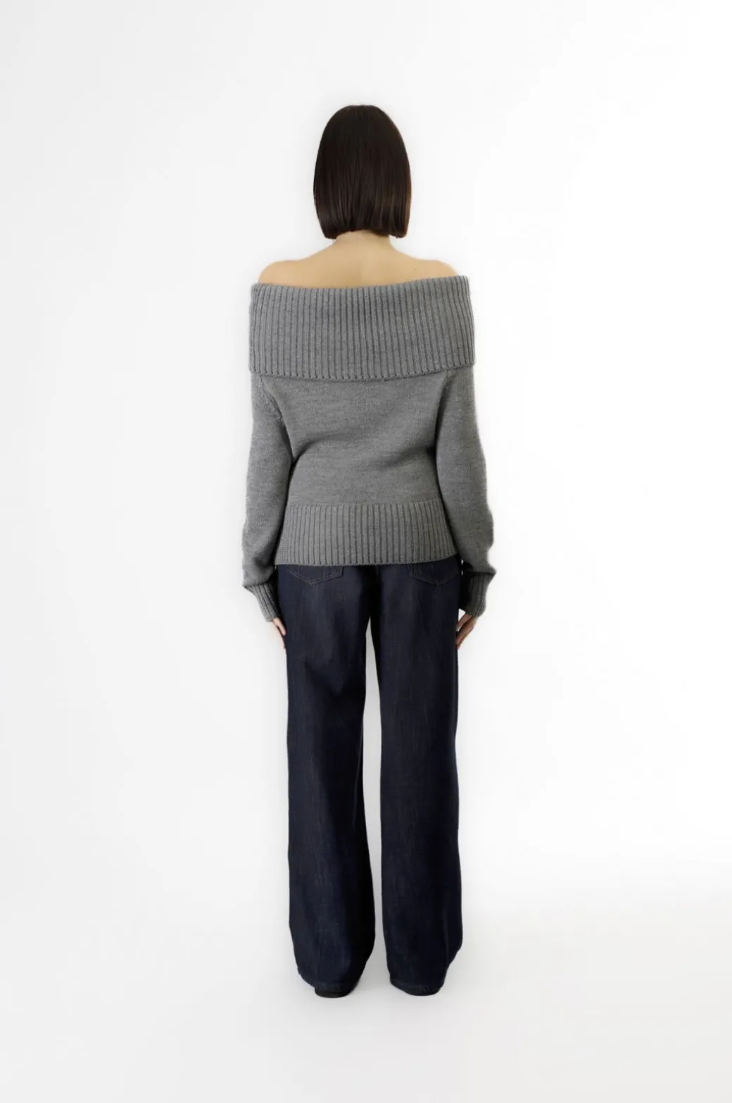 Maglia in misto lana con scollatura a barca risvolatato che lascia le spalle scoperte. capo dal tocco casual e moderno. perfetto da indossare tutti i giorni.
