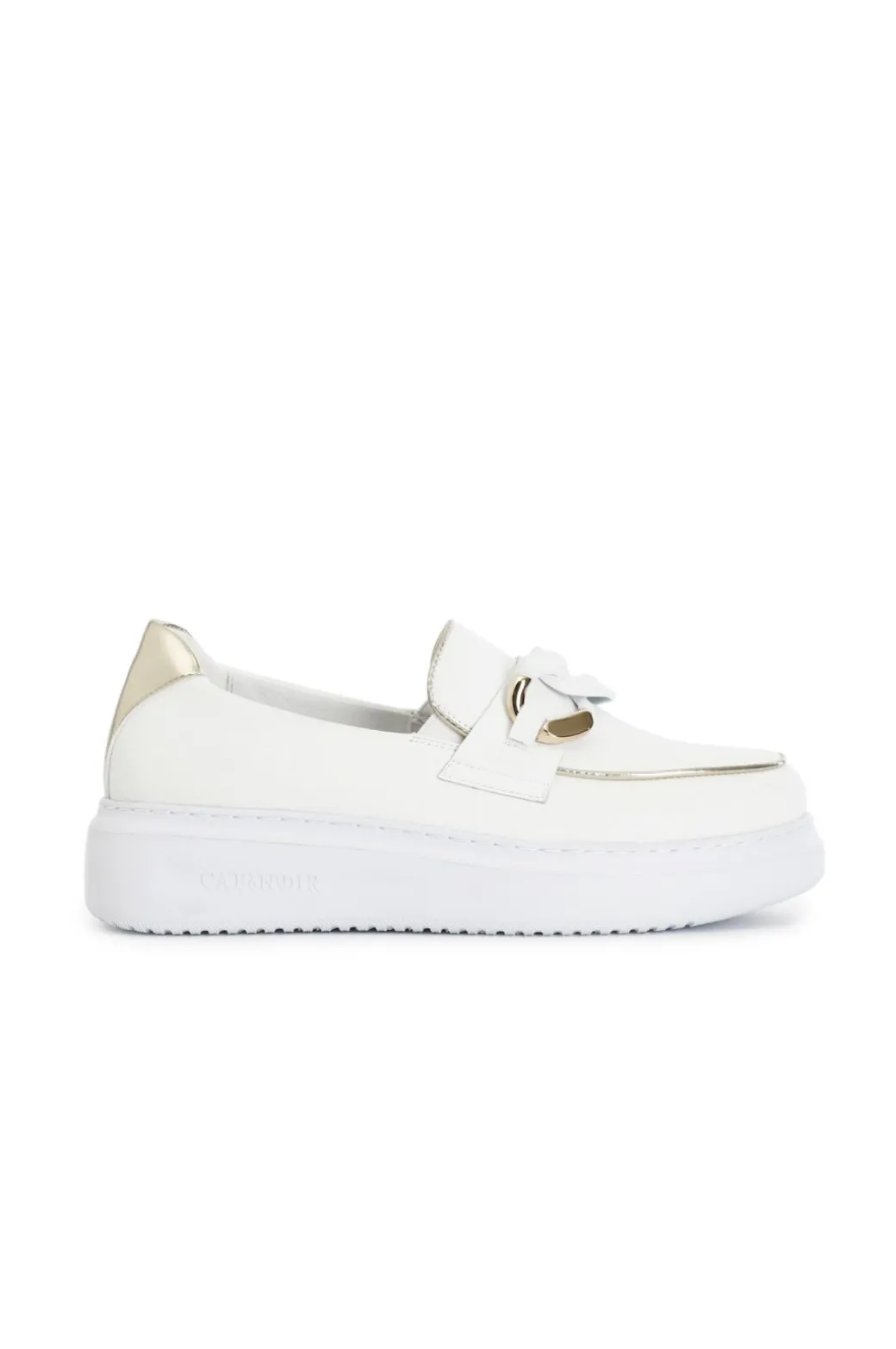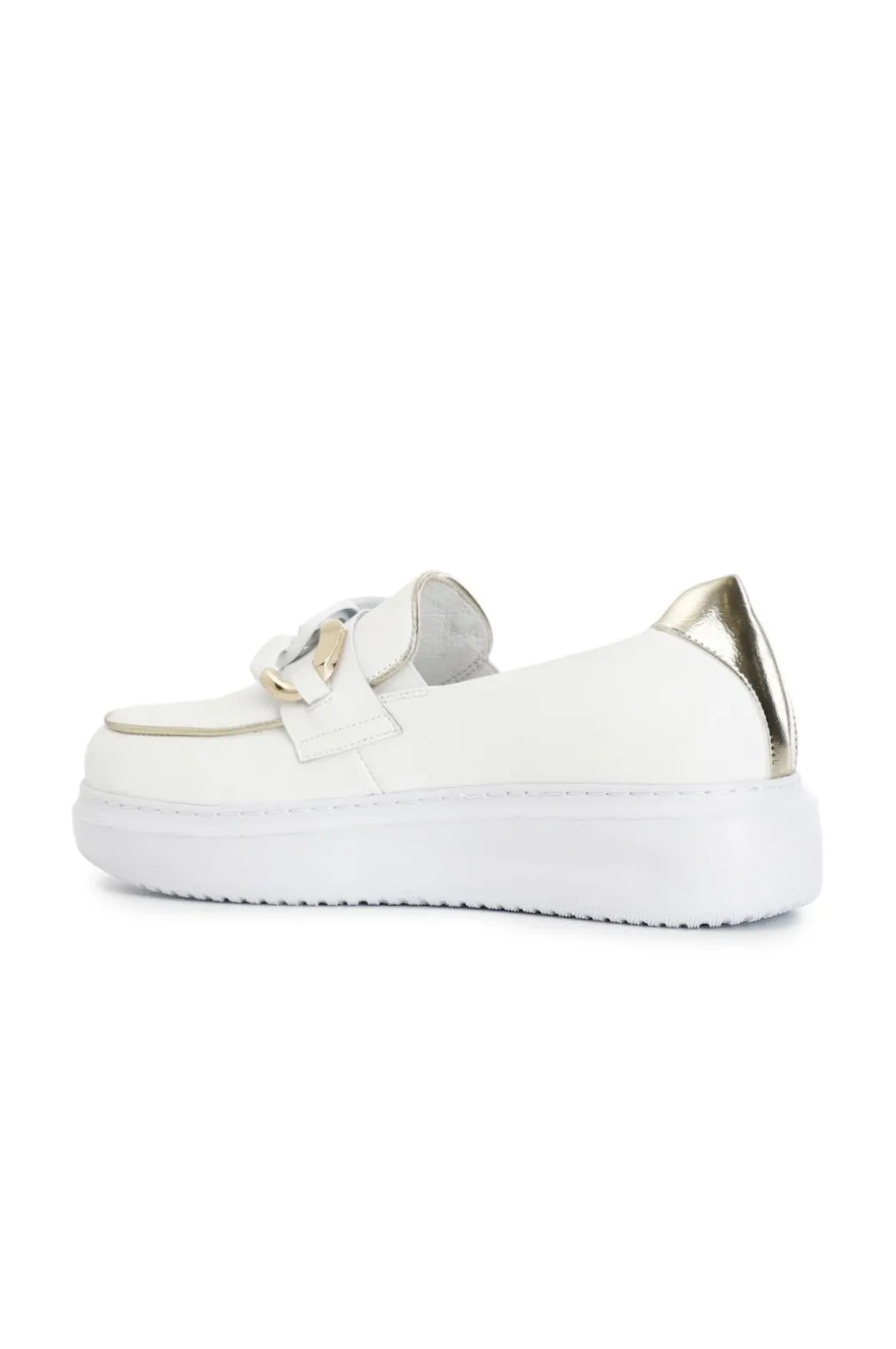 Mocassini dallo stile sportivo arricchiti da dettagli dorati e un raffinato accessorio a catena. tomaia e sottopiede in pelle. suola a cassetta.