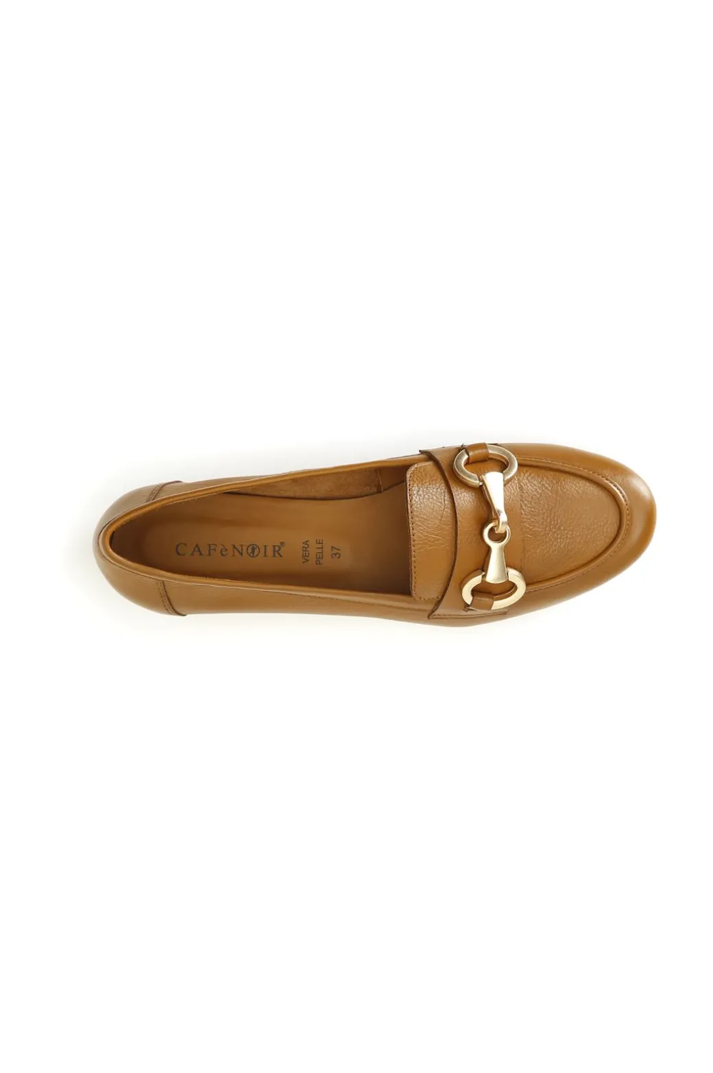Mocassini in pelle con morsetto. soletto in pelle. tacco 12 mm.
