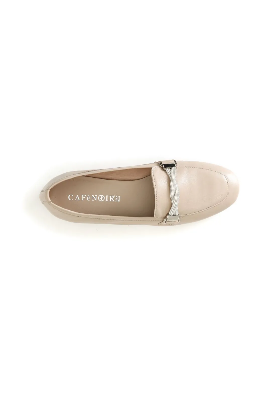 Mocassini donna in pelle arricchiti da accessorio in strass. il soletto è in pelle. tacco alto 15mm. modello versatile e dinamico ideale per completare moltissimi outfit.