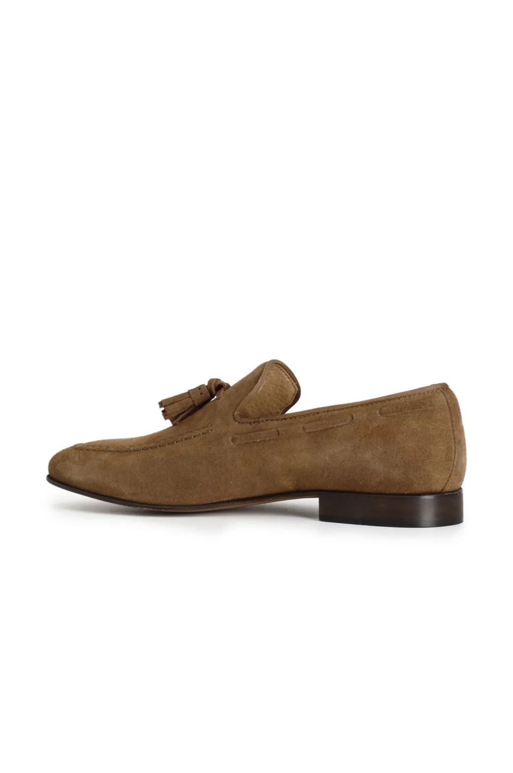 mocassini uomo in pelle scamosciata con nappine cuoio