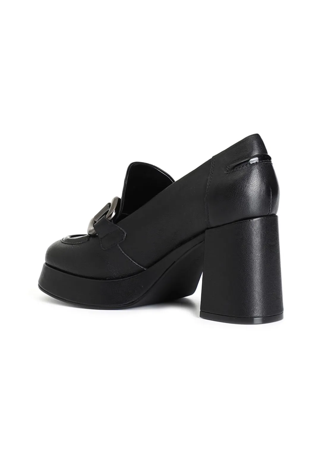 Mocassino da donna in nappa con morsetto. tacco 80 mm plateau 20 mm. fodera e soletto sono in pelle. comodità ed eleganza allo stesso tempo ed un carattere unico adatto ad ogni outfit.