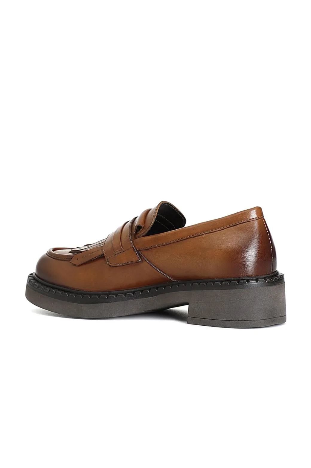 Mocassino da donna in pelle con frangia. tacco alto 50 mm. il soletto è in pelle.