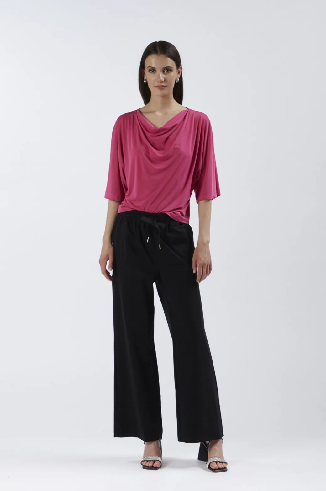 Pantaloni dritti con cintura elastica realizzati in tessuto elasticizzato. comodi e pratici per un look casual impeccabile.
