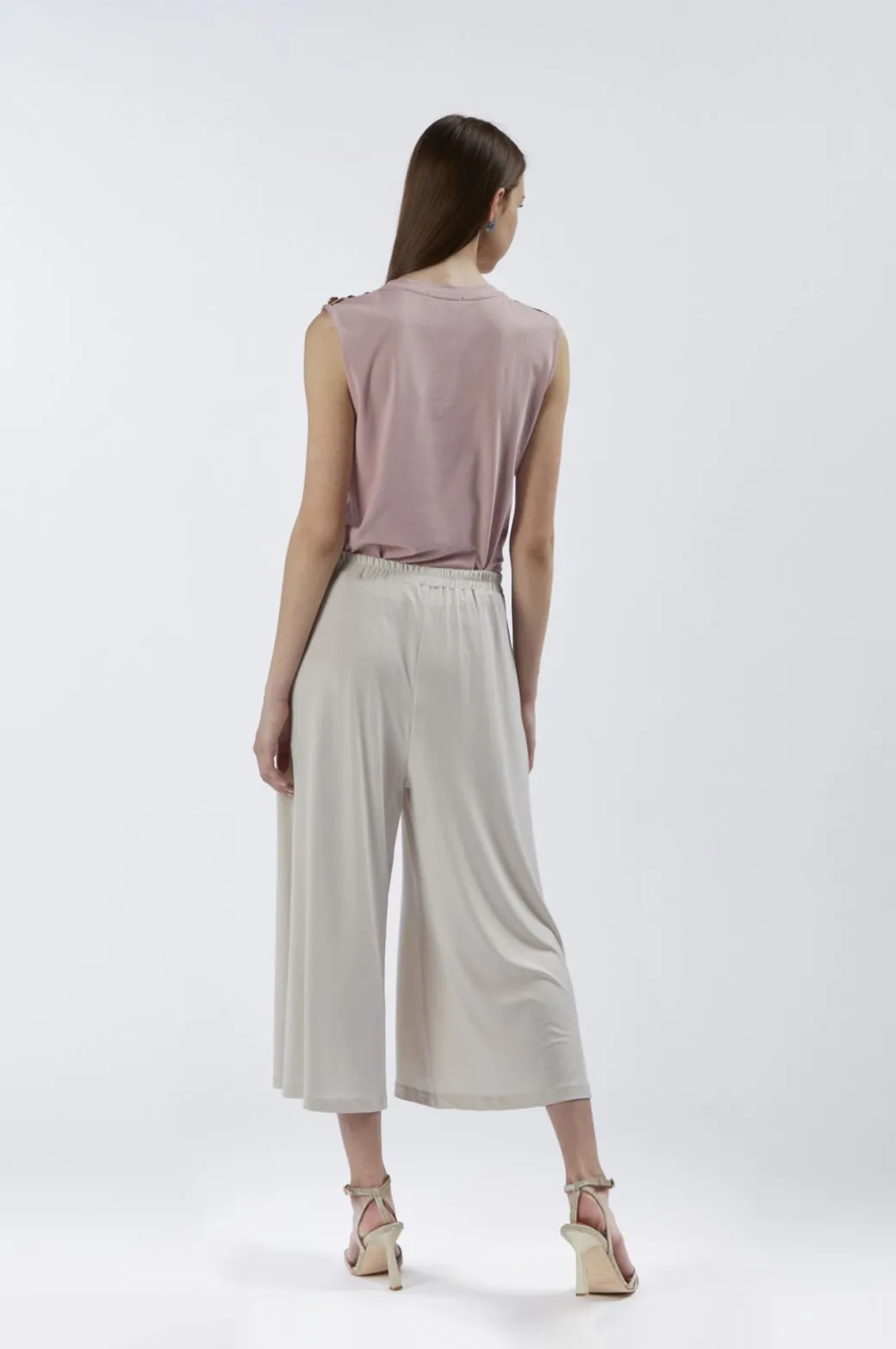 pantaloni culotte con elastico gesso