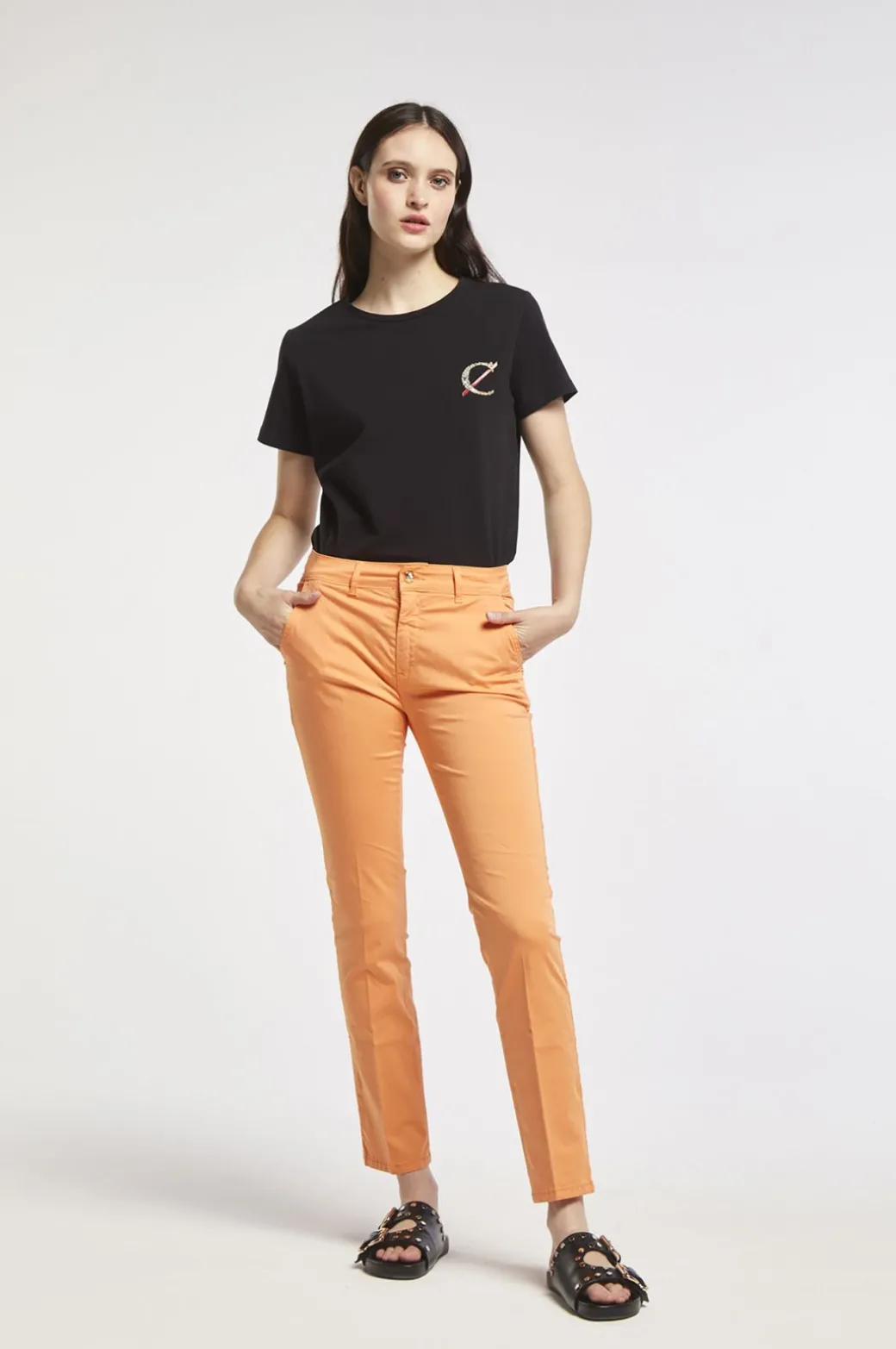Pantaloni slim tinto capo realizzati in tessuto di cotone elasticizzato