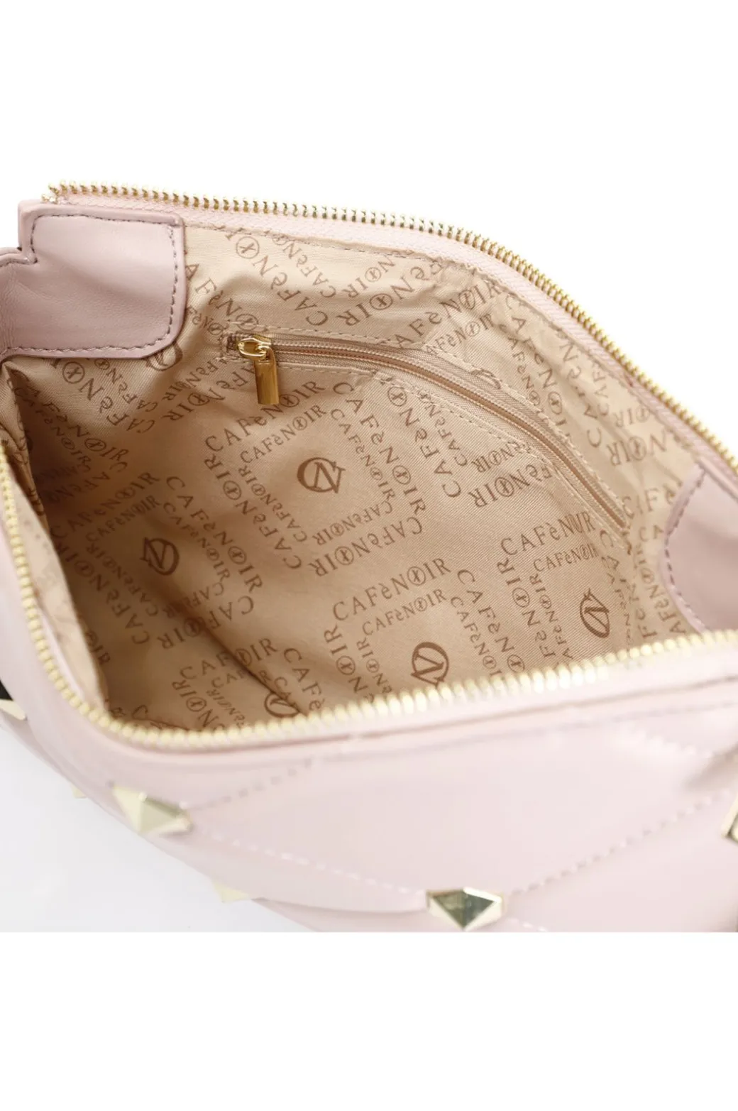 Pochette trapuntata con borchie esagonali e logo ambossed. borsa provvista di unico scomparto di un taschino interno con zip e di tracolla. chiusura con cerniera.