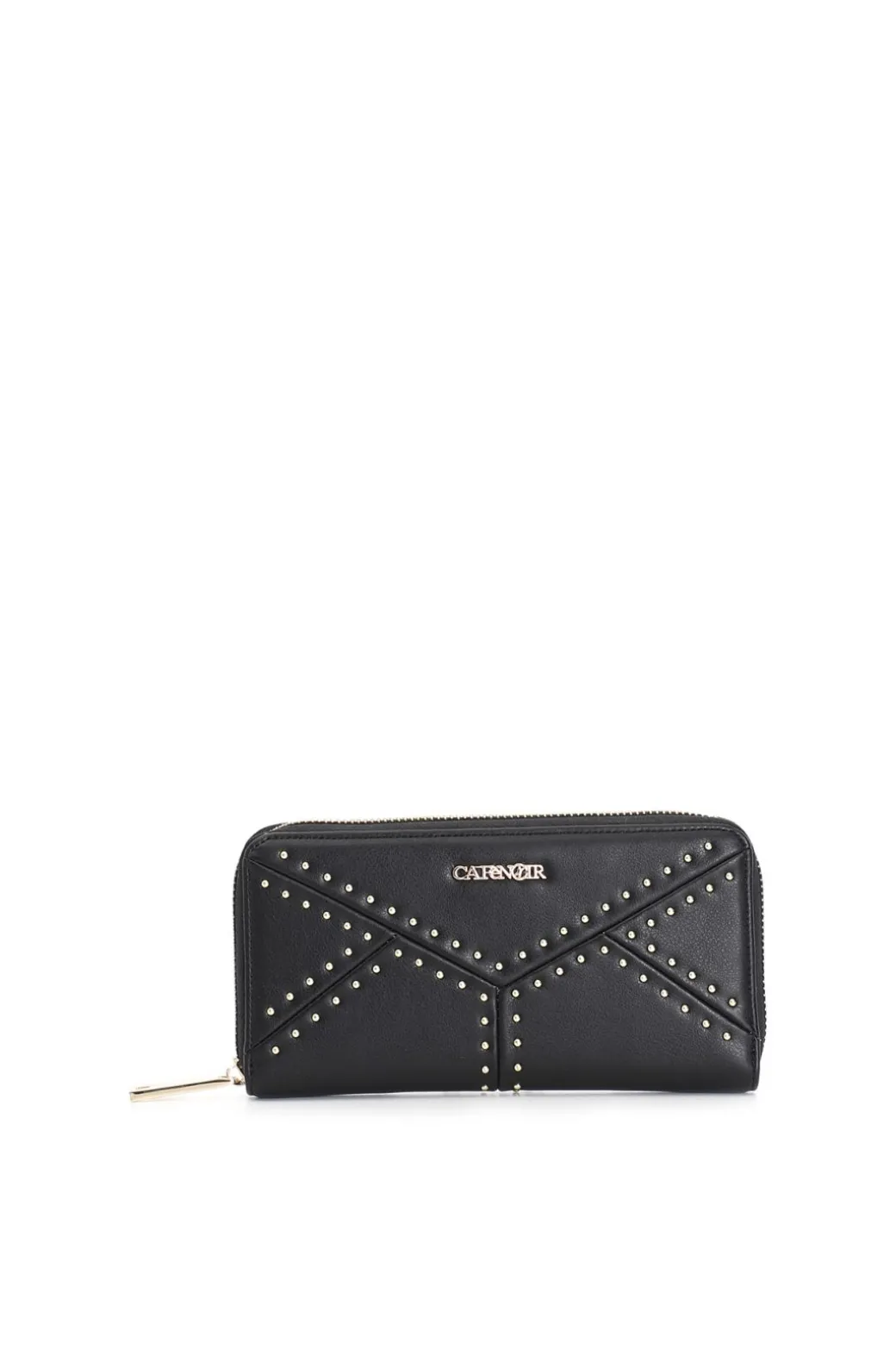 portafoglio zip round con lavorazione patchwork con applicazone di microrivetti nero