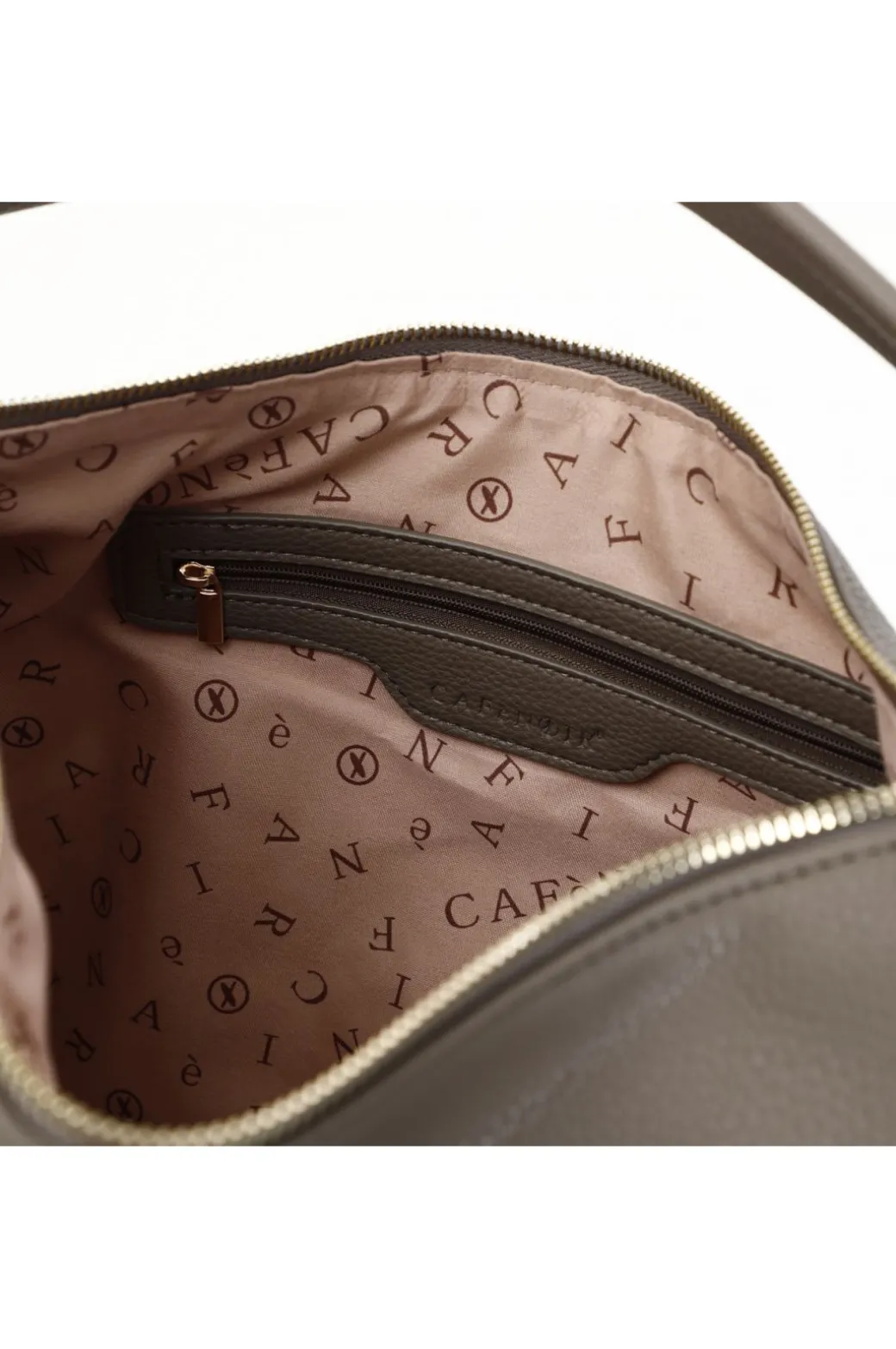 Sacca con materiale morbido e taschino sul davanti, apertura con cerniera e lettere metalliche CafèNoir