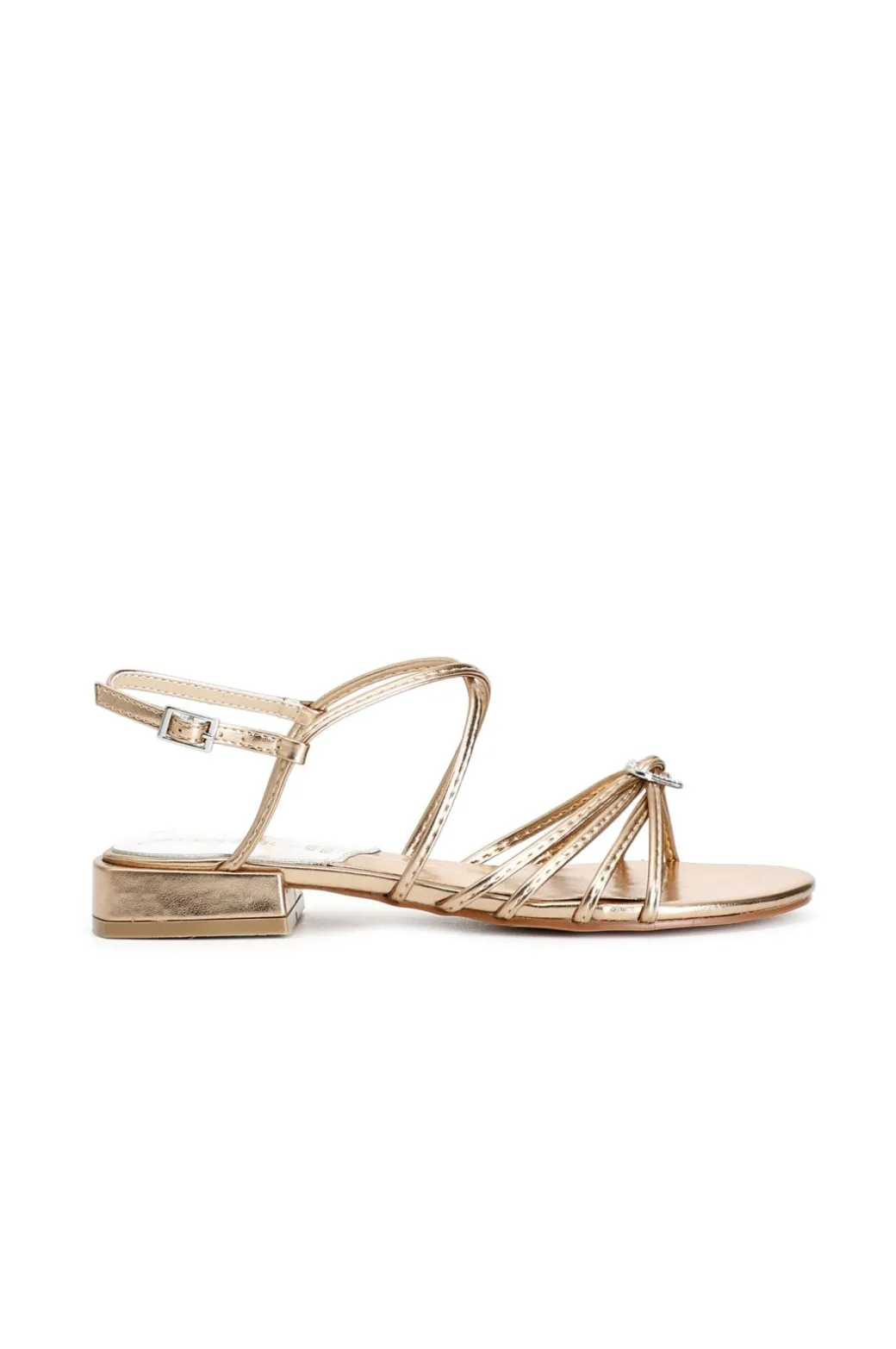 Sandali con multilistini con effetto laminato caratterizzato da un doppio incrocio. accessorio frontale a forma di cuore. comodo soletto imbottito per una calzata morbida. tacco alto 20mm. comodi da indossare e facili da abbinare.