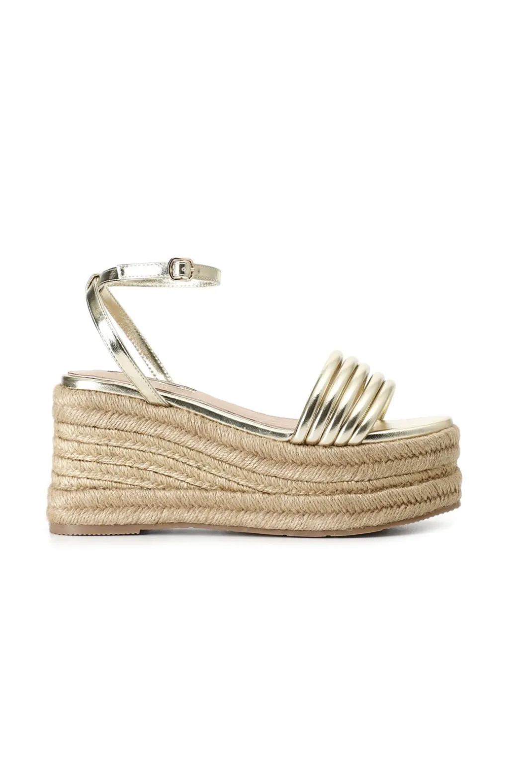 Sandali con mignon imbottiti. plateau alto 55 mm e zeppa in corda di 80 mm.