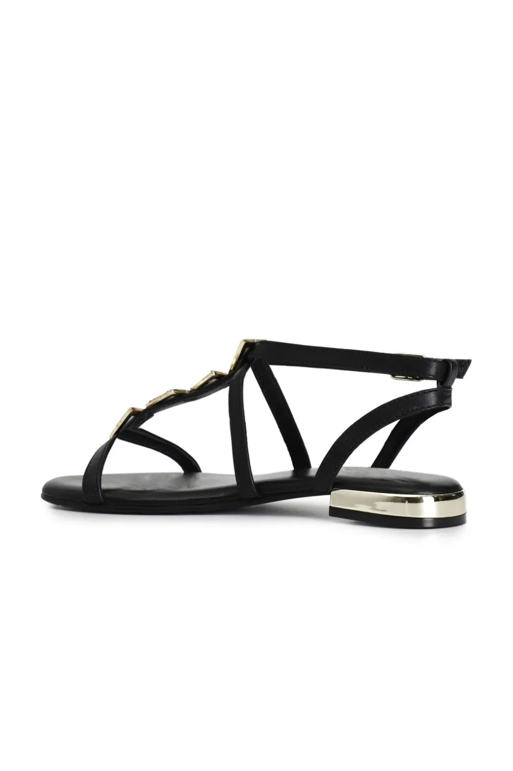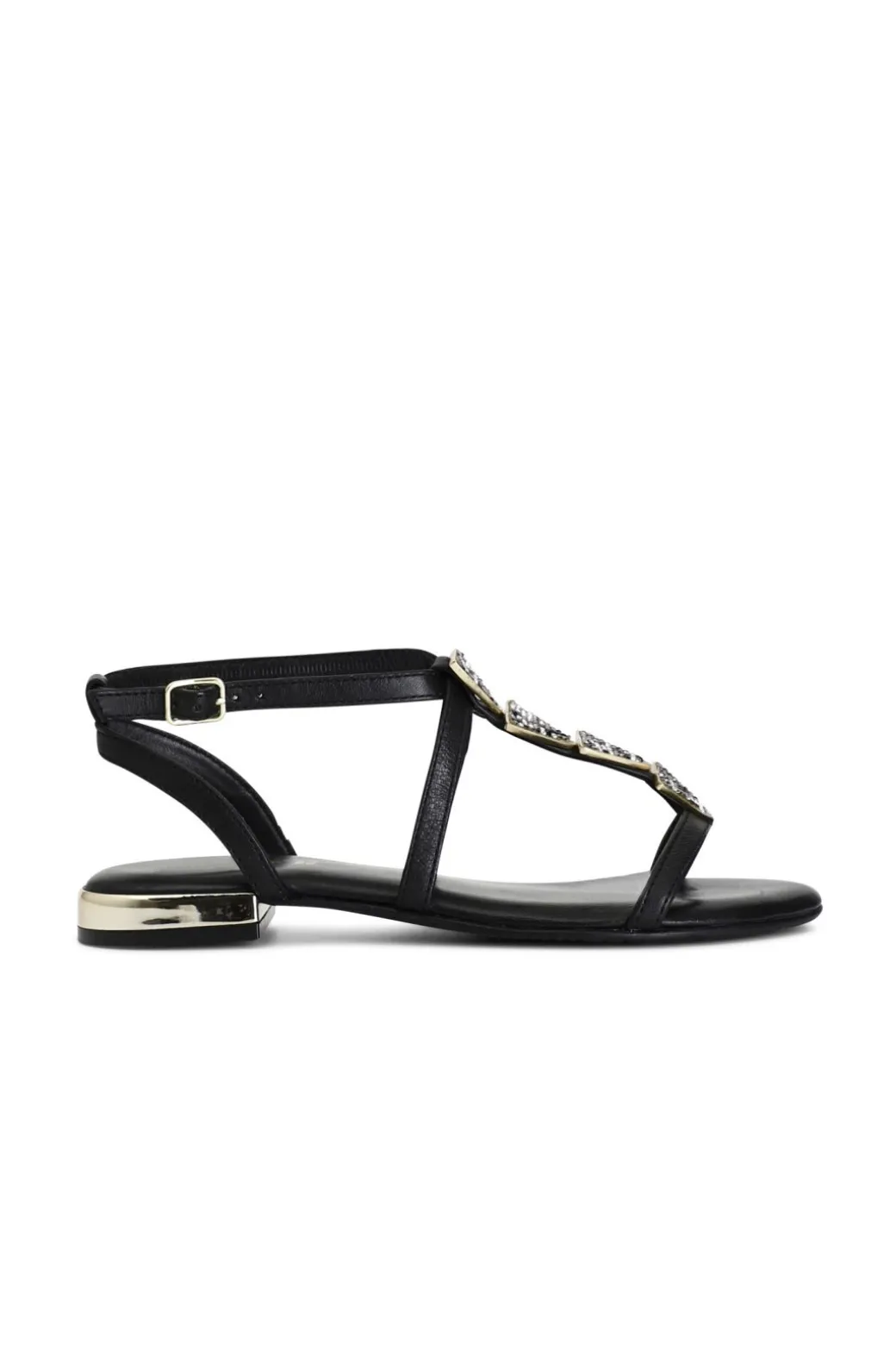 Sandali donna in pelle. accessorio triangoli fatti di strass. cinturino con fibbia alla caviglia.