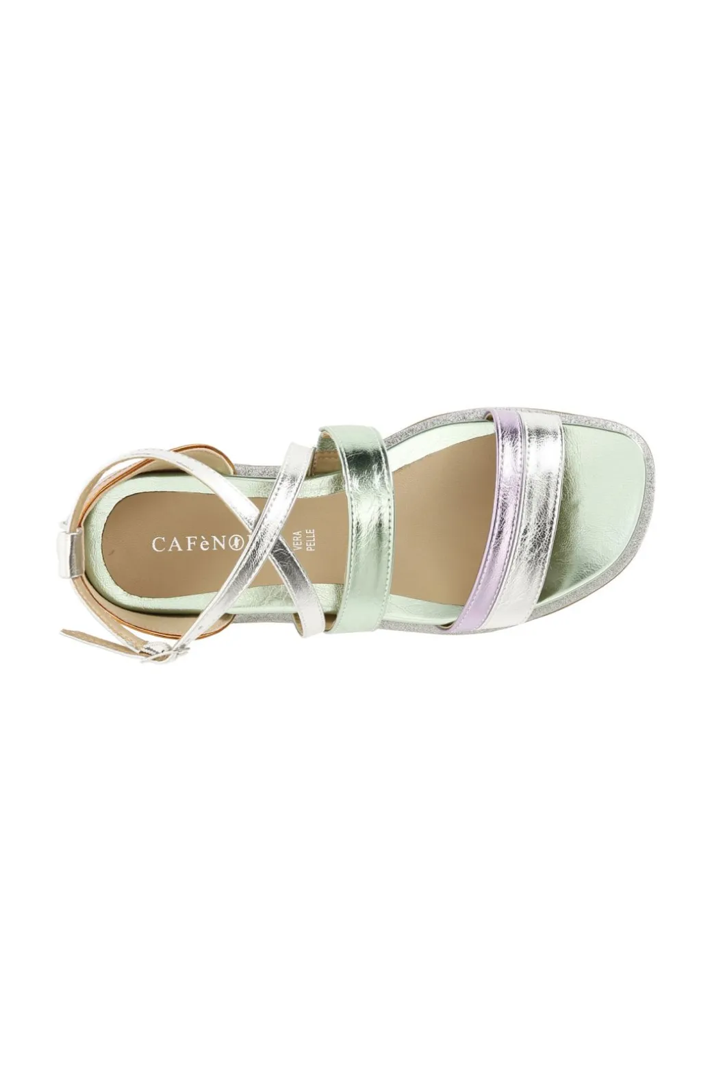 Sandali bassi in similpelle laminata multicolor dai toni pastello. tallone coperto e cinturino alla caviglia.