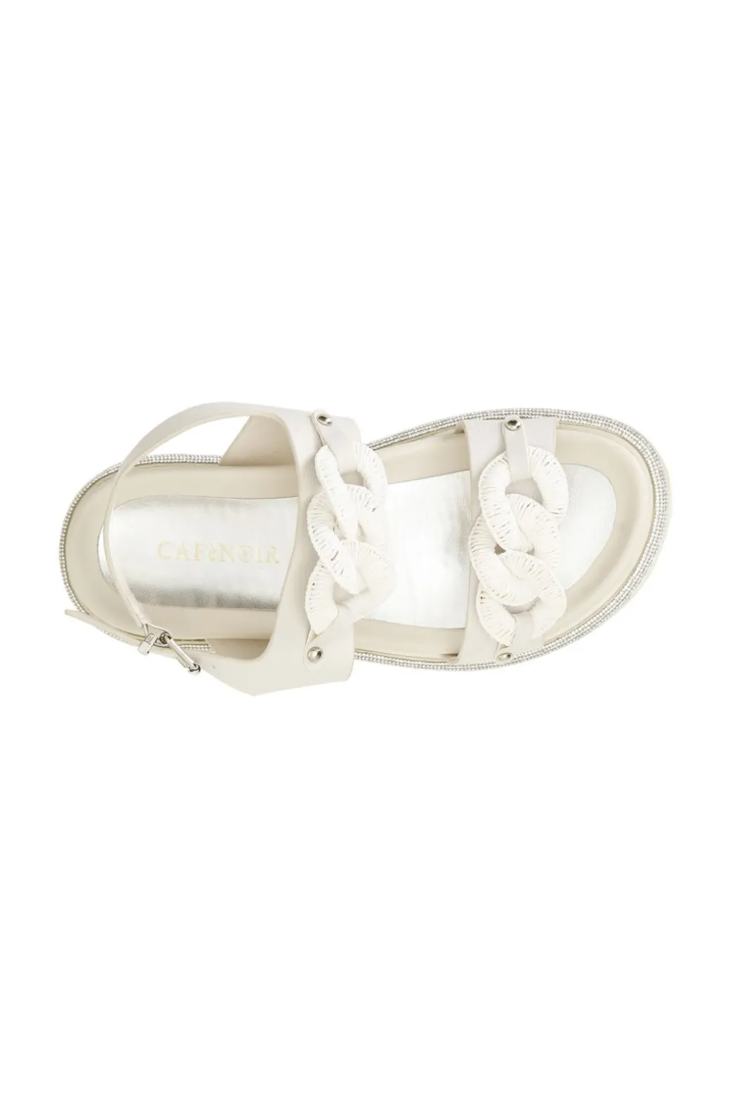 Sandali frate con doppia catena in tono effetto color block. comodo fussbett e inserto di strass laterale sulla suola. tacco alto 40mm.