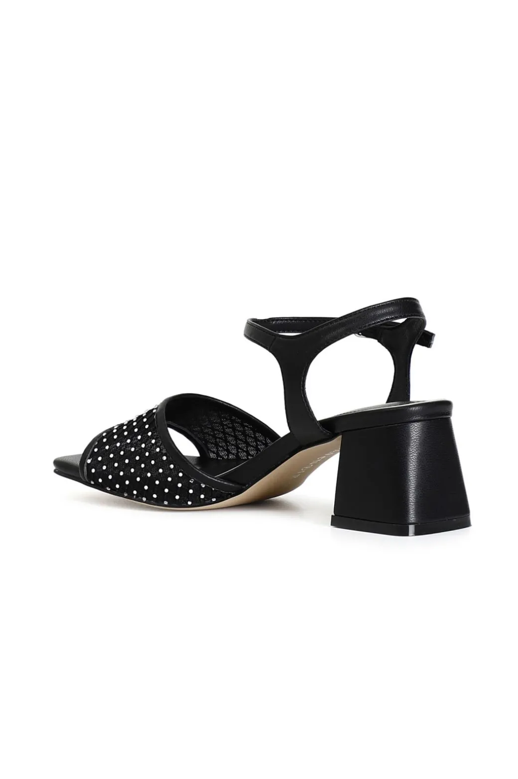 Sandali modello gilda con retina caratterizzata da strass. il soletto imbottito in vera pelle fa risultare la calzatura comoda anche dopo svariate ore di utilizzo. il tacco è di 50mm.