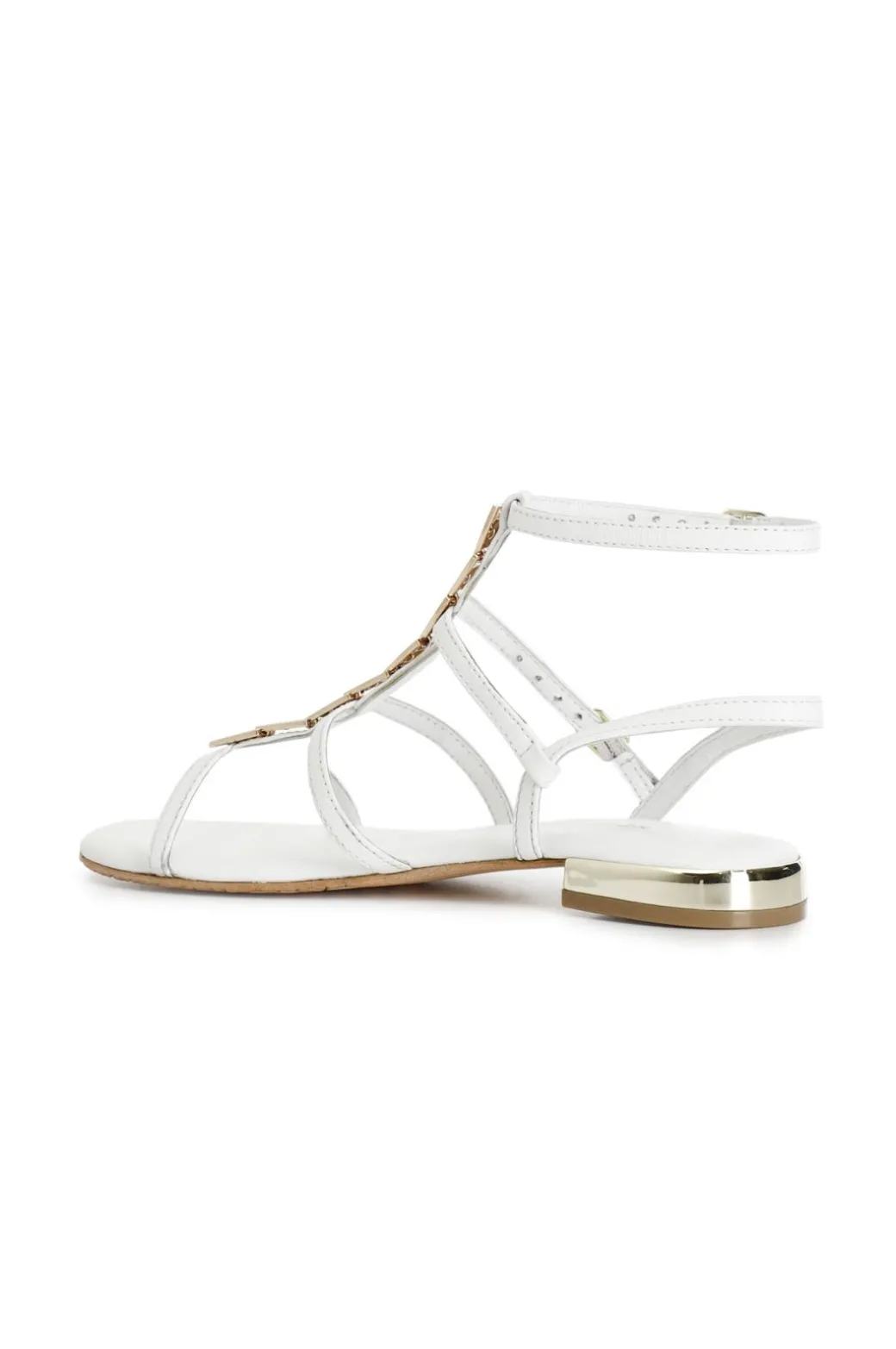 Sandali in pelle stile gladiatore con accessorio dorato. doppio cinturino regolabile.