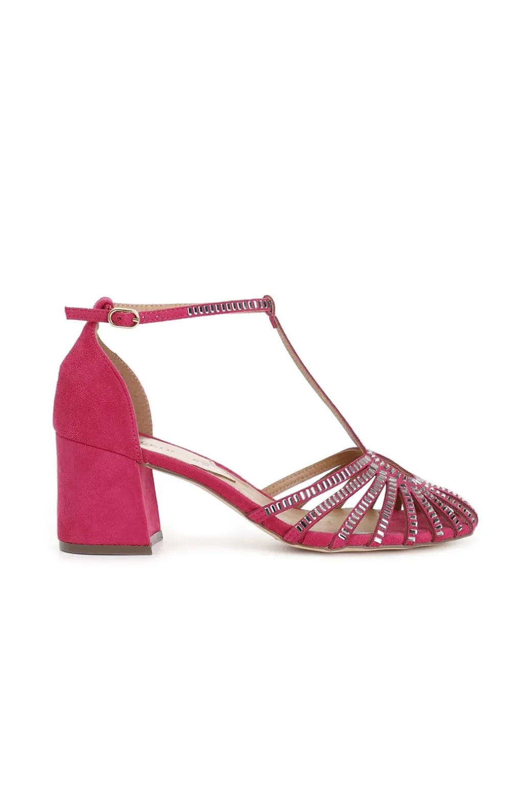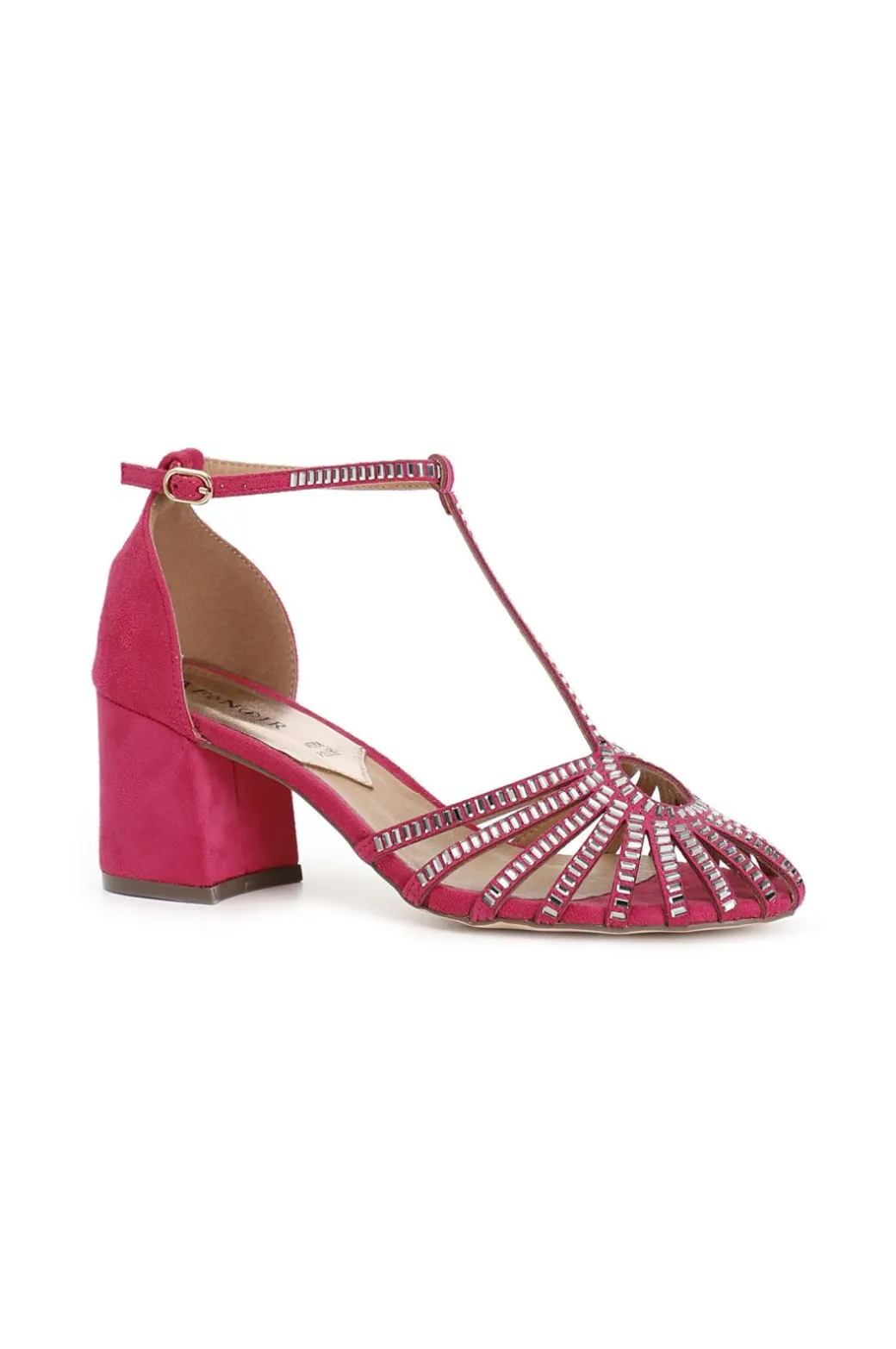 Sandali gabbia a t in microfibra e strass cinturino alla caviglia e tacco h. 60mm