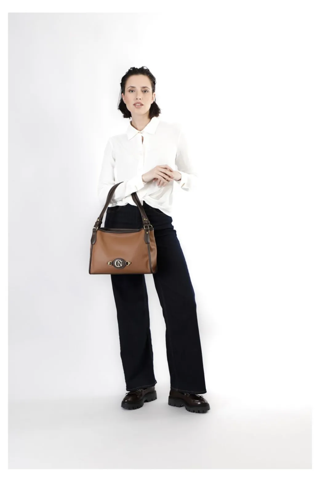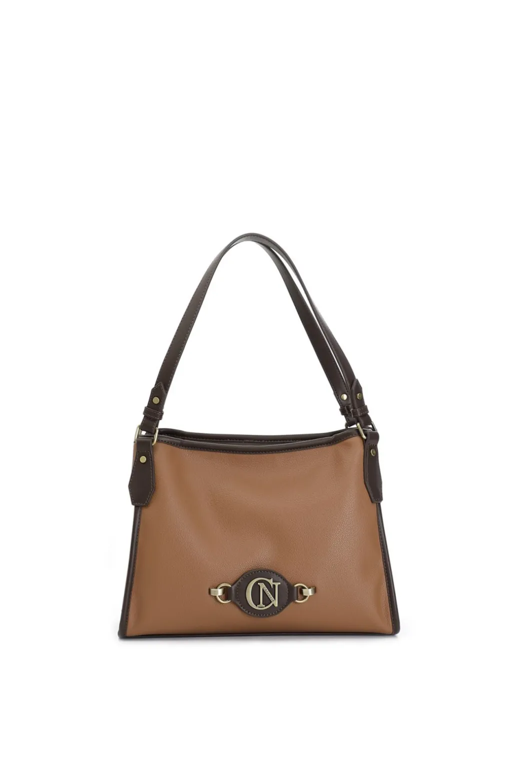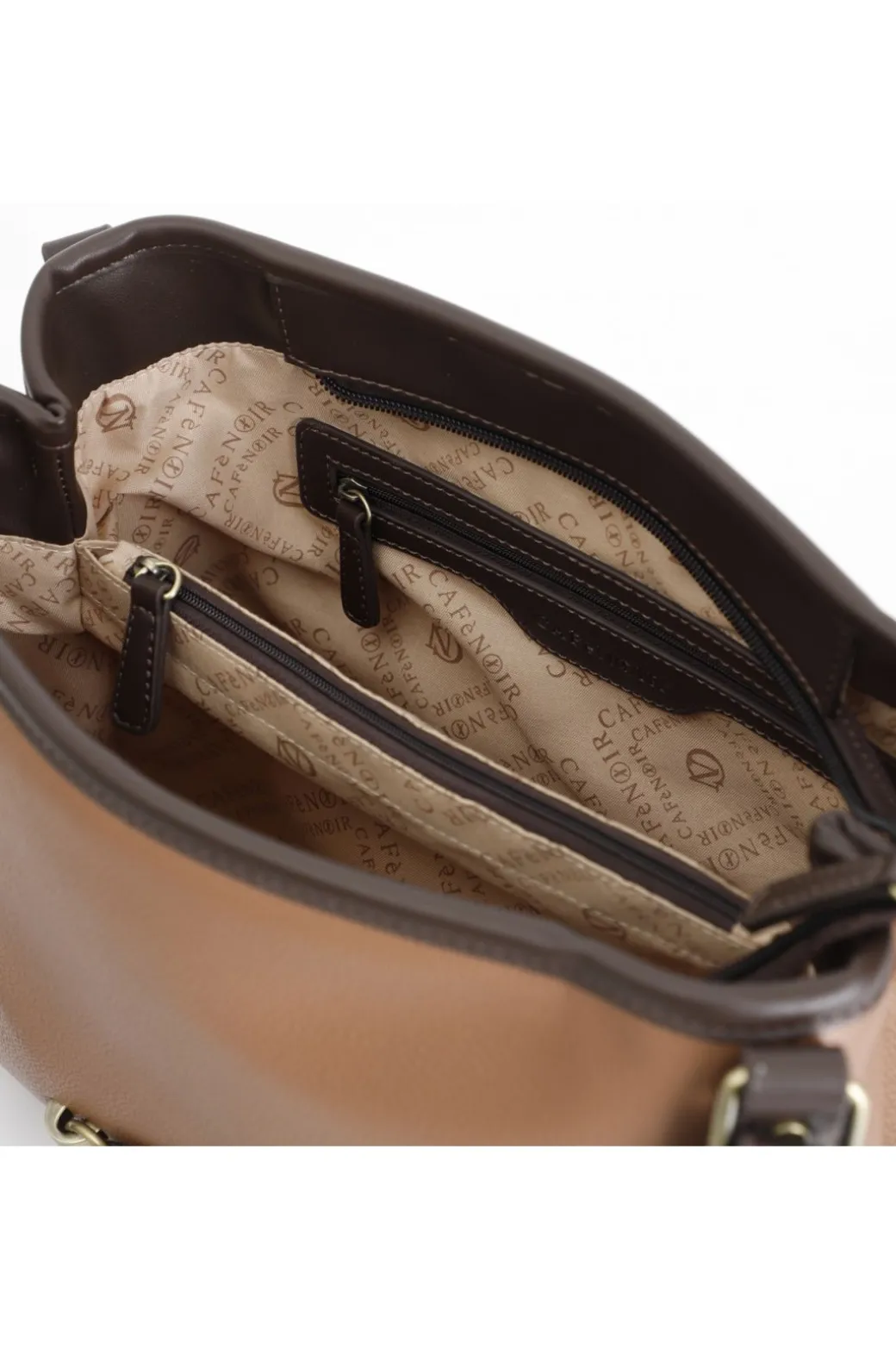 shopping con bordature a contrasto, tag con logo cafènoir in metallo cuoio