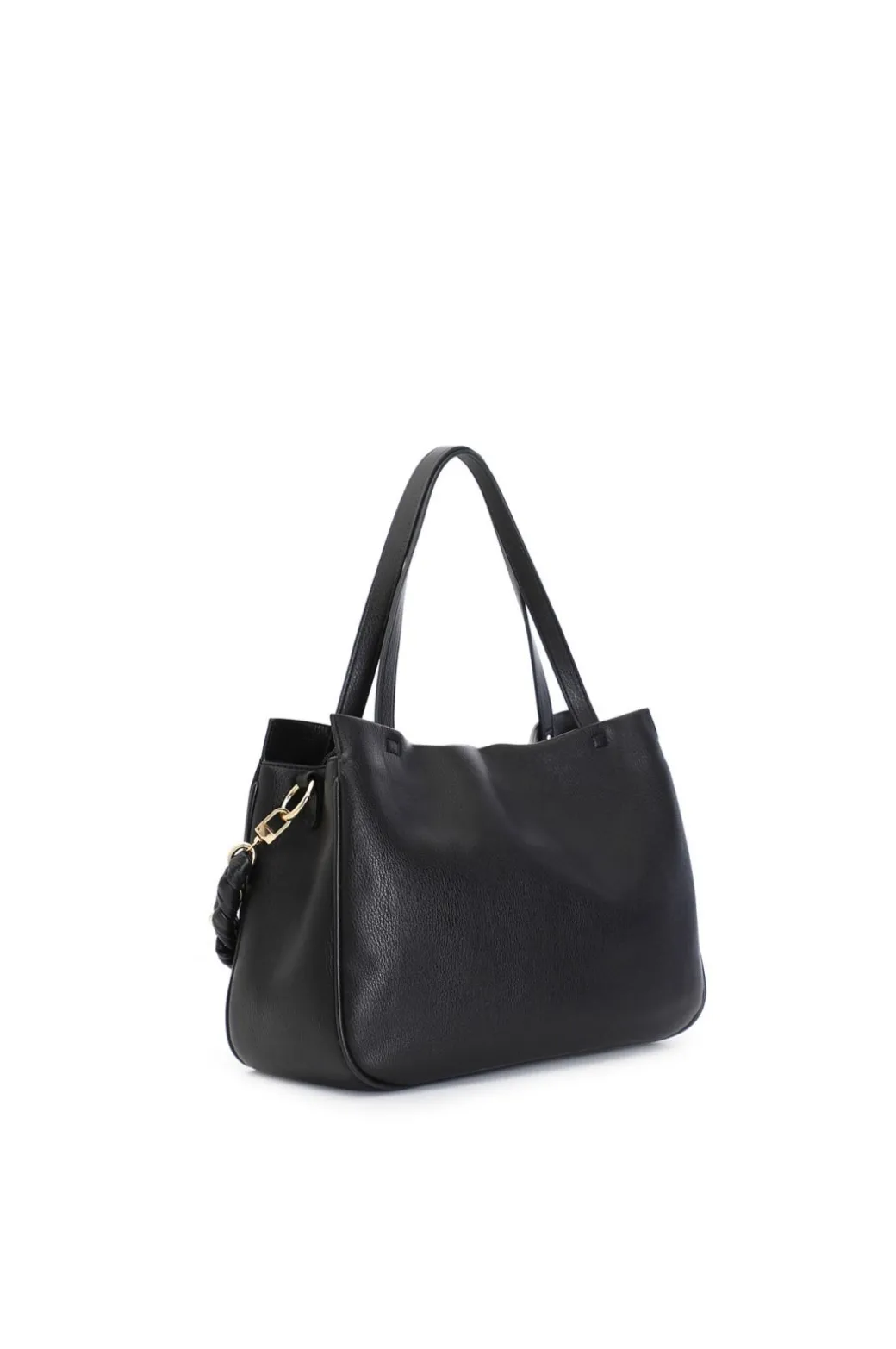 shopping con logo in rilievo e tracolla in catena intrecciata nero