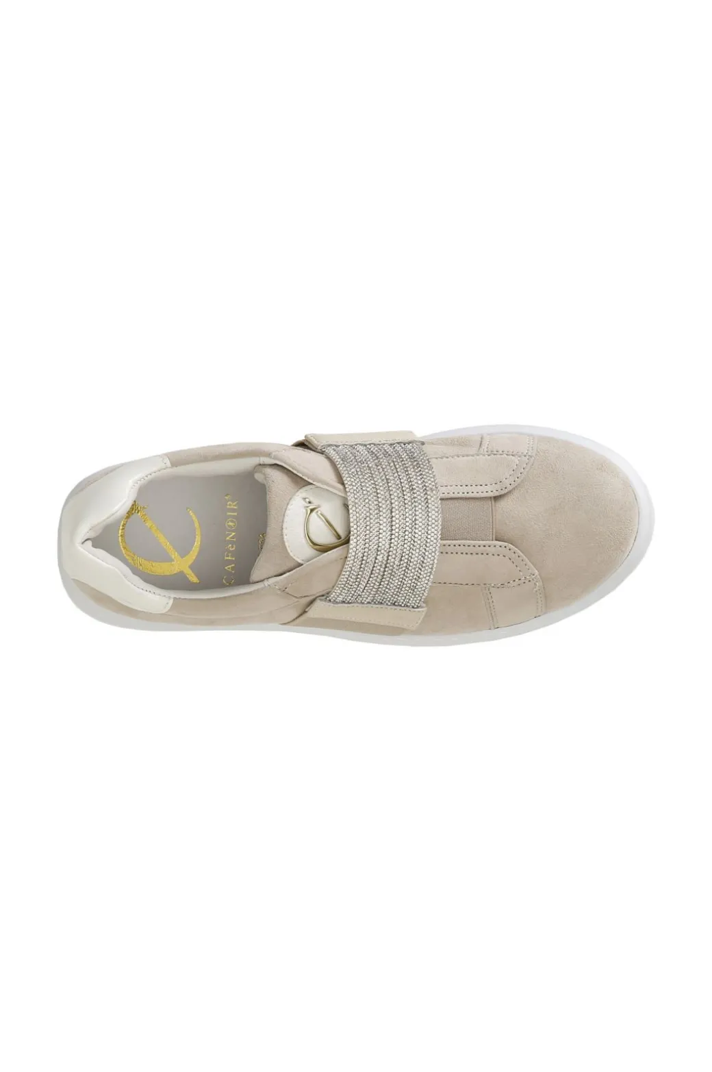 Sneakers modello slip-on in camoscio arricchita da una fascia di strass. tomaia e sottopiede in pelle. suola a cassetta.