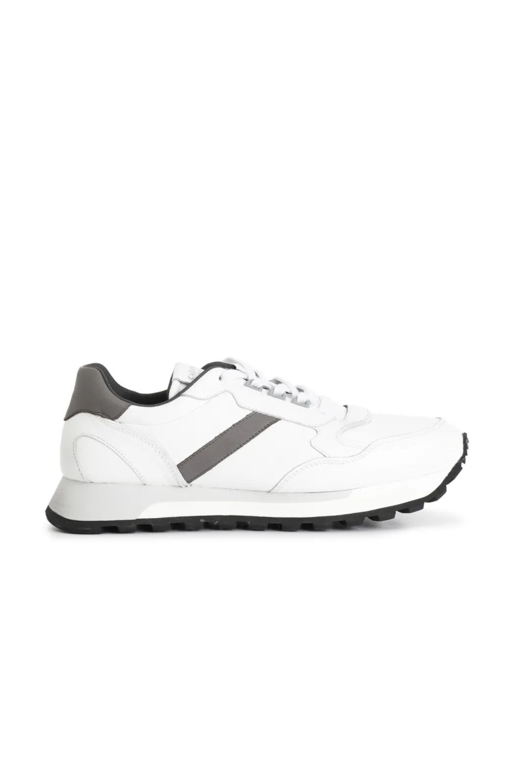 Sneakers da uomo allacciate in pelle rivestita. il soletto è in pelle. suola in gomma multicolor. questa calzatura garantisce comodità e sostegno durante la camminata il modello unisce con sobrietà comfort e stile.