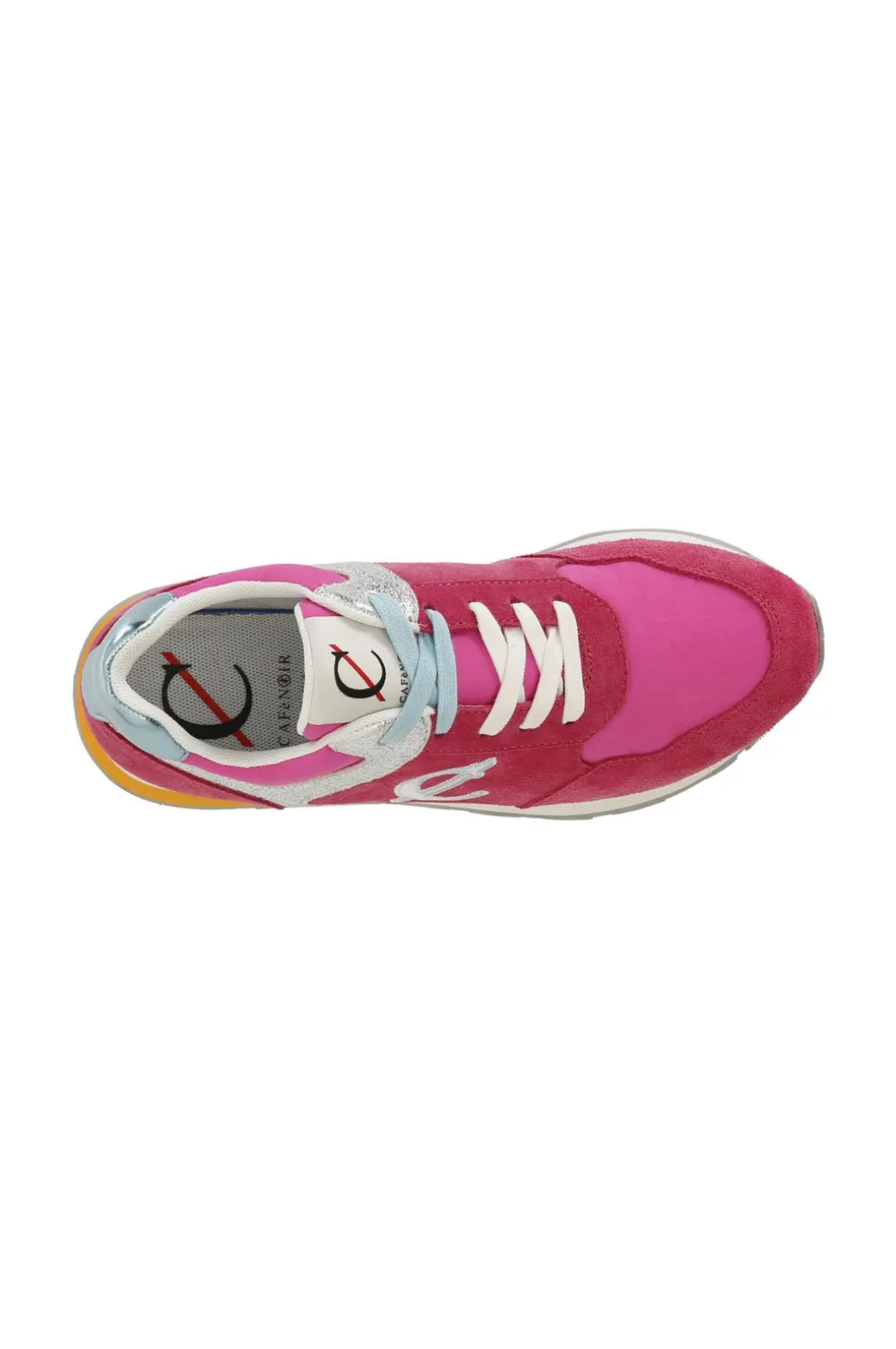 Sneakers in pelle scamosciata e tessuto con riporti glitter. logo embossed laterale con monogramma cafènoir. chiusura con lacci colorati. suola in gomma multicolor.