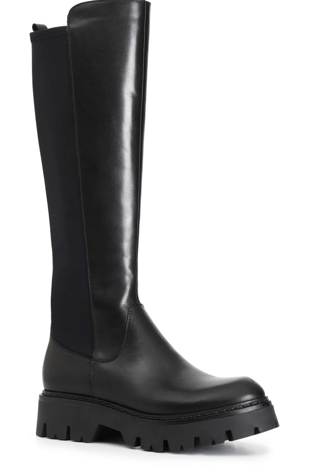 Stivale da donna in pelle e tessuto elasticizzato per un look super grintoso. il soletto è in pelle. modello versatile e dinamico ideale per completare moltissimi outfit.