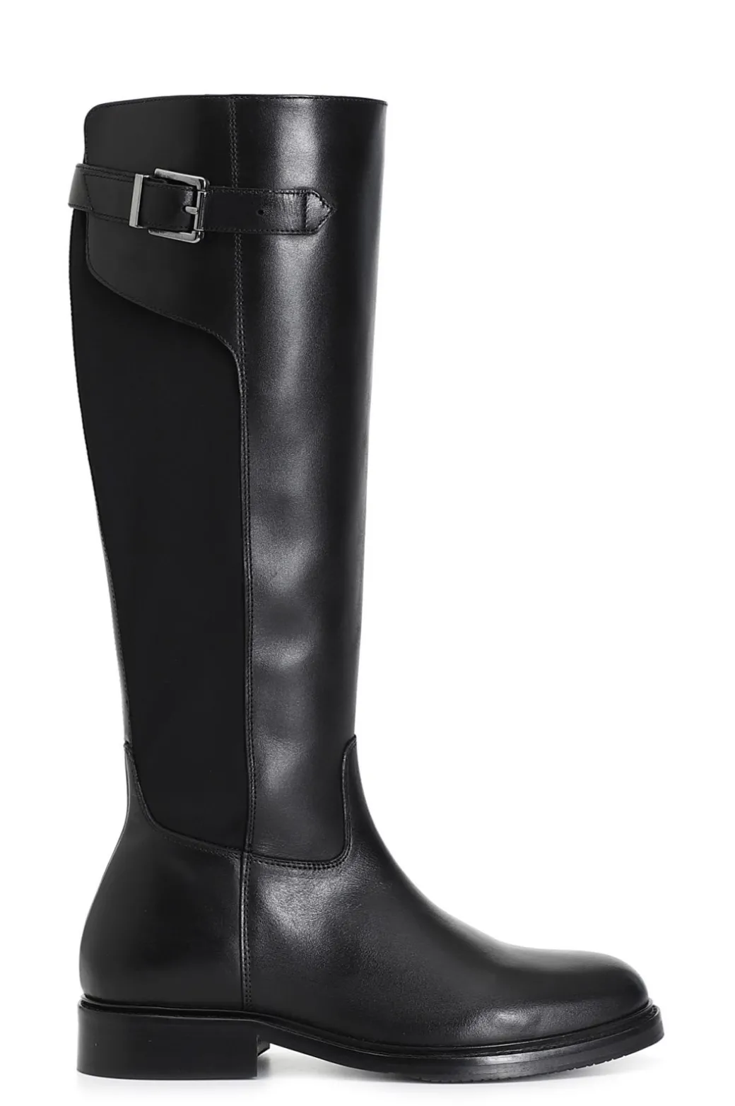 Stivale da donna in pelle e lycra stretch con fibbia a decoro. il tacco è alto 30mm e il soletto è in pelle.