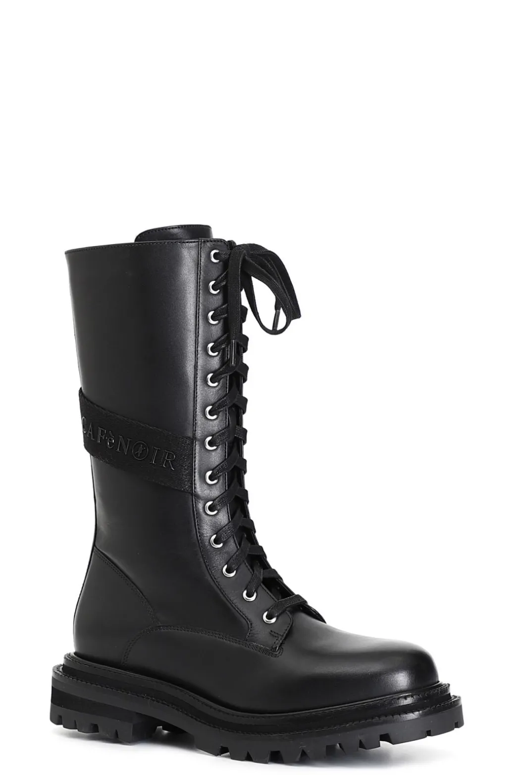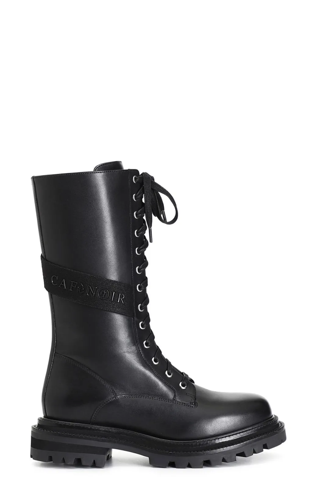 Stivaletto donna 3/4 in pelle allacciato arricchito da un particolare nastro nero logato cafènoir. il soletto è in pelle.