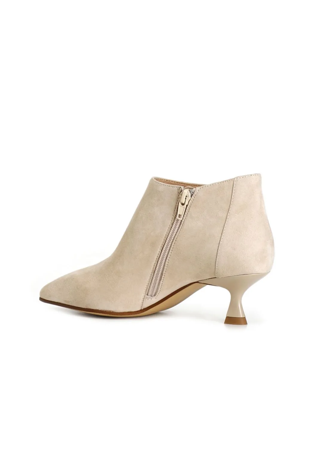 Tronchetti affusolati in pelle scamosciata con zip laterale interna per facilitare la calzata. tacco a rocchetto alto 45mm. calzatura alla moda ma indossabile anche nel quotidiano per soddisfare le esigenze di uno stile di vita dinamico.