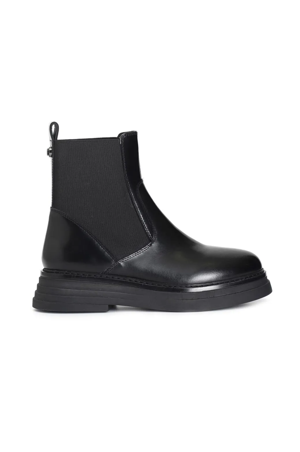 Tronchetto da donna con elastico in pelle abrasivata con borchietta personalizzata sul retro. il soletto è in pelle.