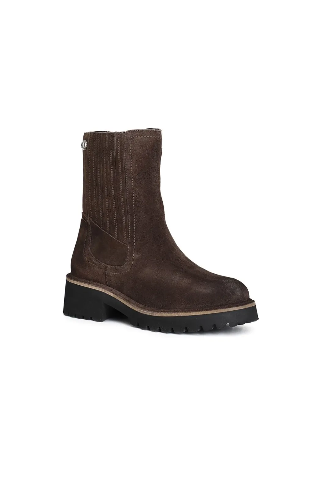 Tronchetto in pelle scamosciata con elastici rivestiti con borchietta personalizzata. tacco alto 50 mm. il soletto è in pelle.