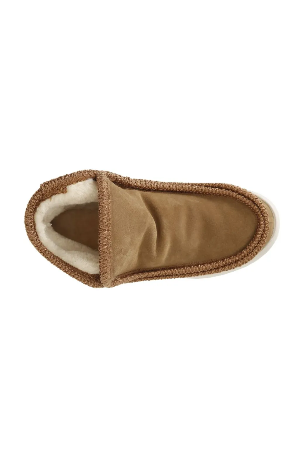 tronchetto donna con bordo mocassino e pelliccia sintetica camel
