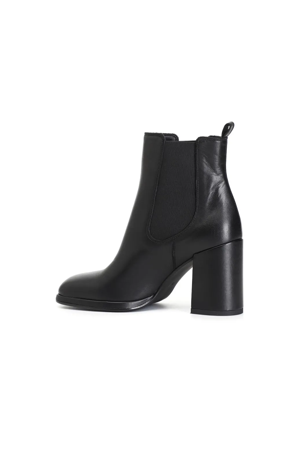 Tronchetto da donna in pelle. elastico da entrambi i lati per una calzata semplice. tacco squadrato da 85mm. soletto in pelle.