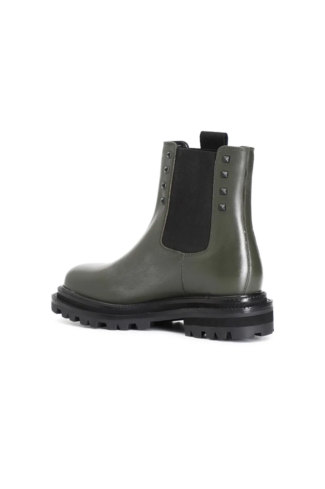 Tronchetto donna in pelle con elastico arricchito da un particolare nastro logato cafènoir e borchie di tendenza. il soletto è in pelle.