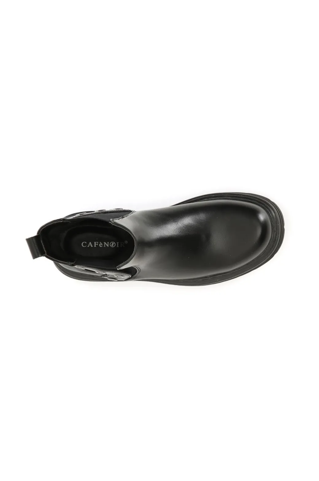 Tronchetto donna in similpelle con elastico laterale su gambale e motivo composto da occhielli.