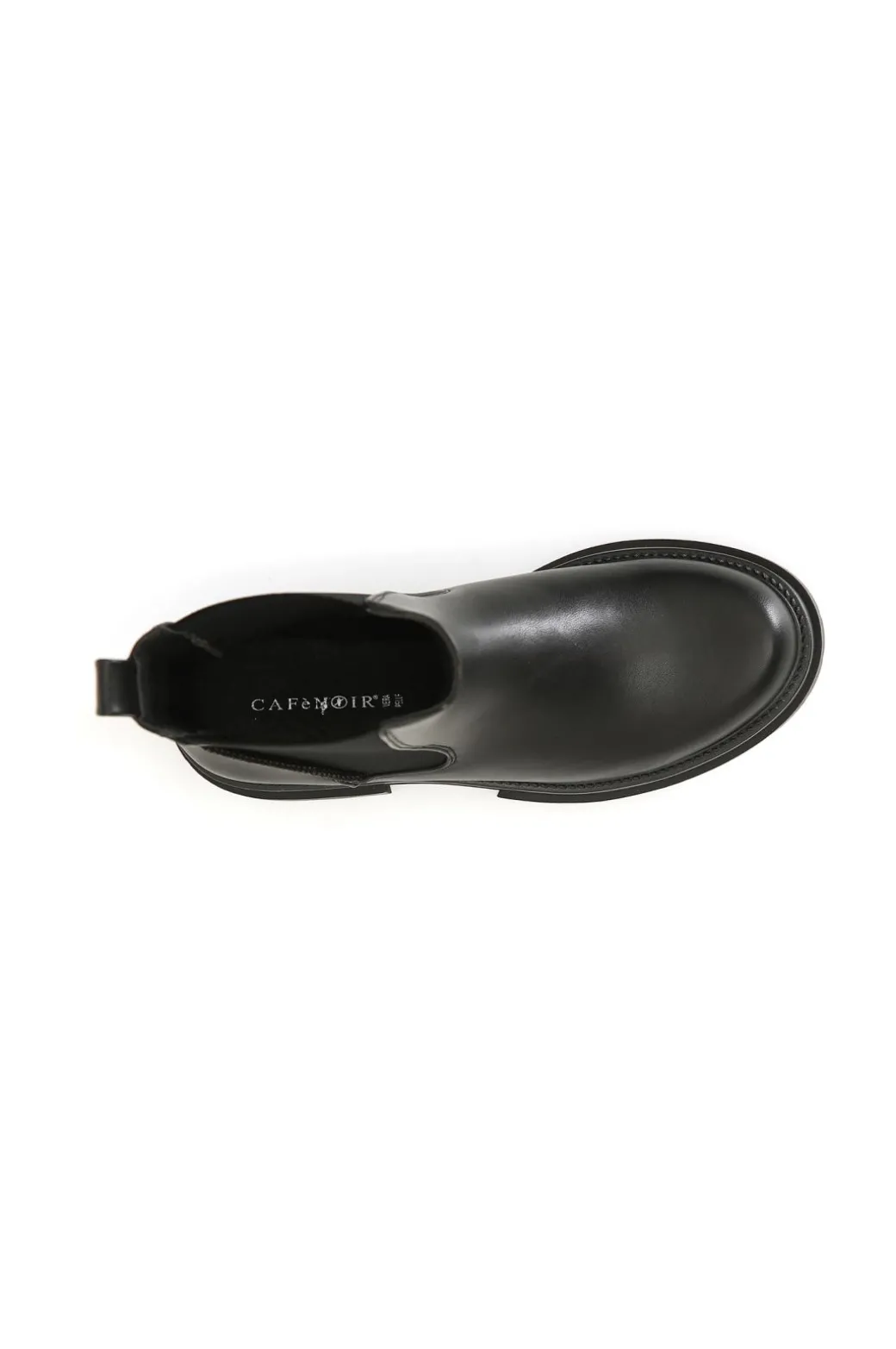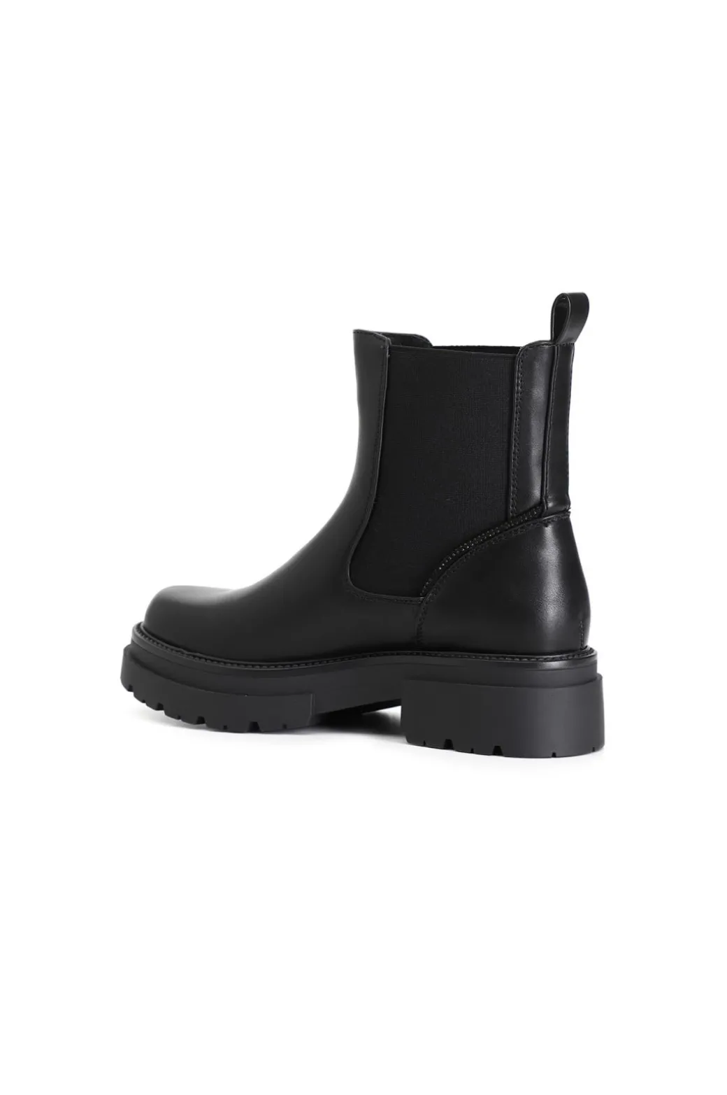 Tronchetto da donna in similpelle con elastici laterali sul gambale arricchito da profilo fatto di strass. il soletto è in pelle.
