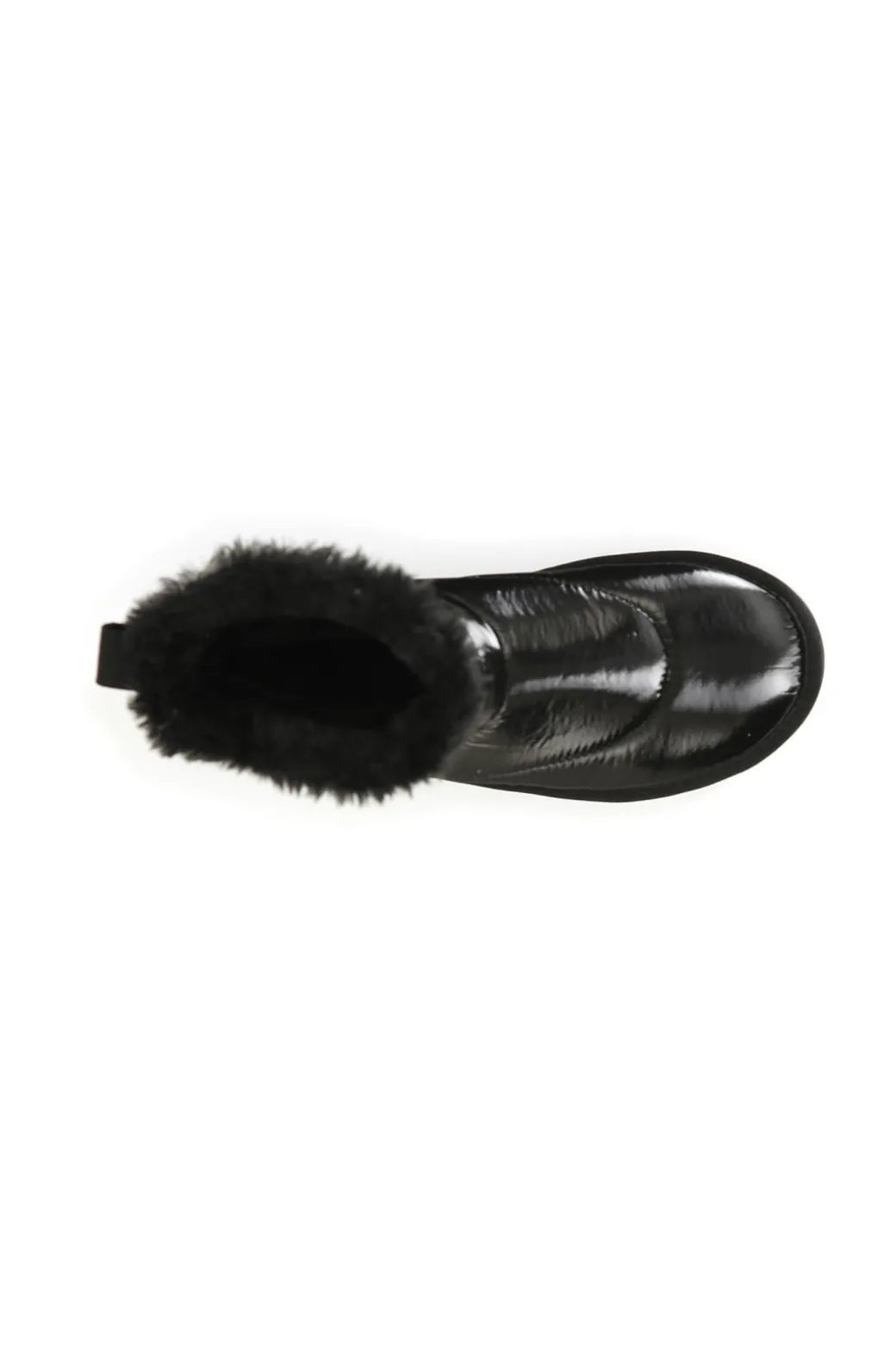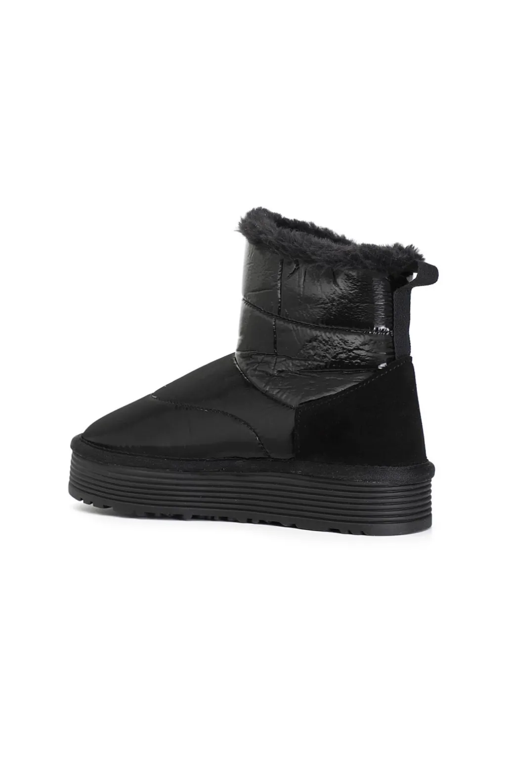 Tronchetto in nylon impreziosito da un nastro con logo cafènoir fatto di strass la fodera è in pelliccia sintetica. plateau alto 35mm