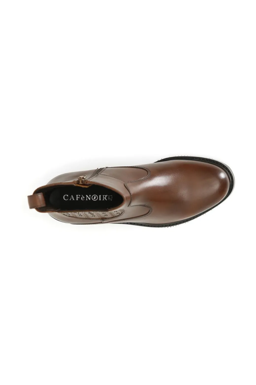 Tronchetto da donna in pelle con elastico nascosto arricchito da una cascata di borchie. il tacco è altezza 30mm e il soletto è in pelle.