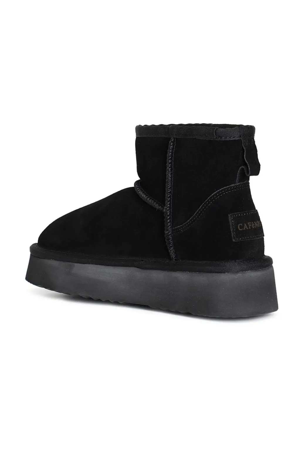 Tronchetti in pelle scamosciata con interno in pelliccia sintetica. suola alta 40 mm. logo cafènoir in metallo posizionato sul retro della calzatura.